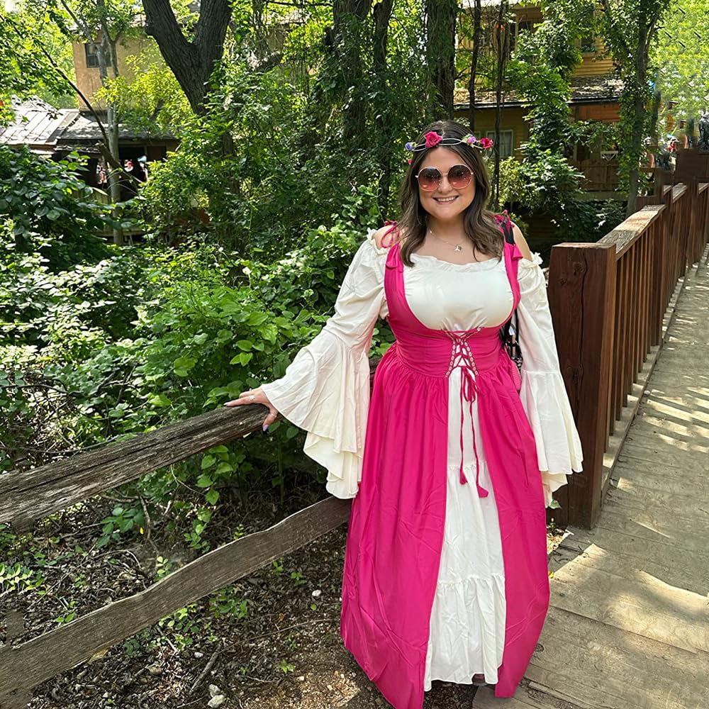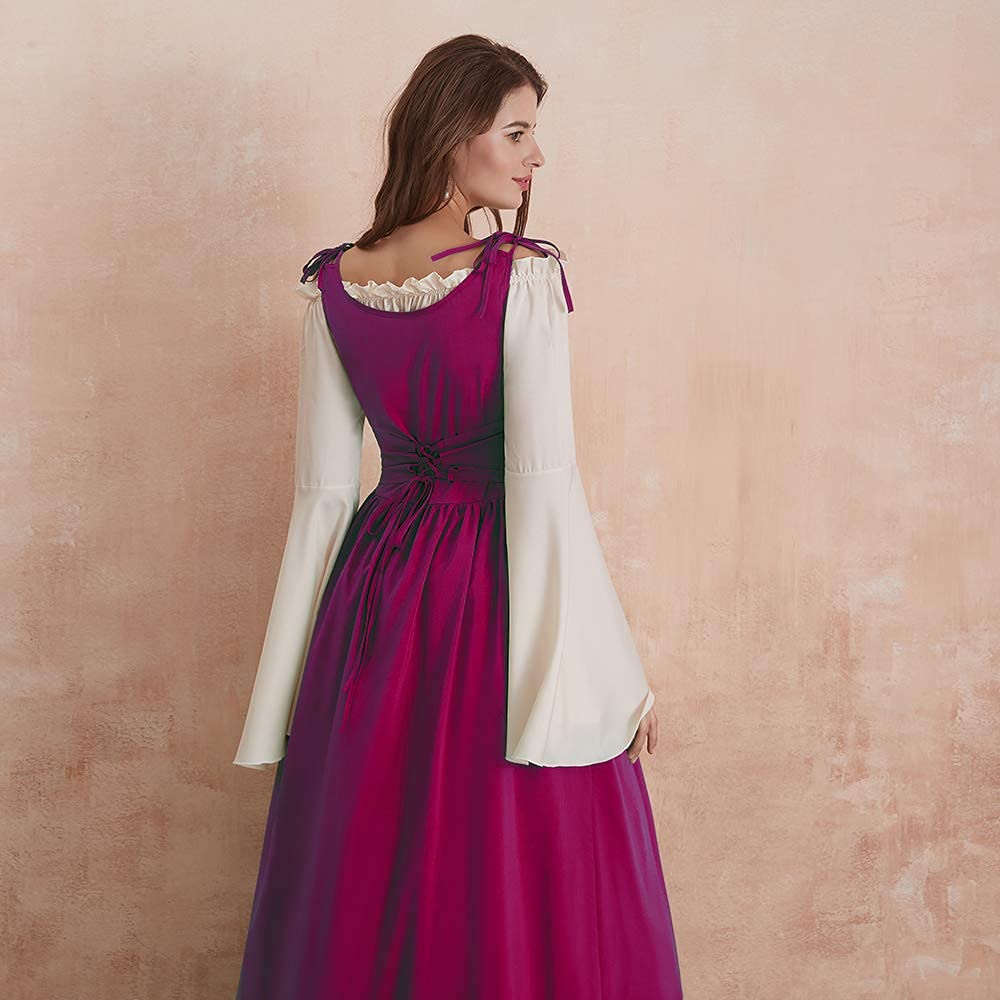 Style: Long Flare Sleeve, Floor Length, Off Shoulder, Elastic Waist, Comfortable, Medieval Long Dress for Women, Vintage Masquerade Party Dress
