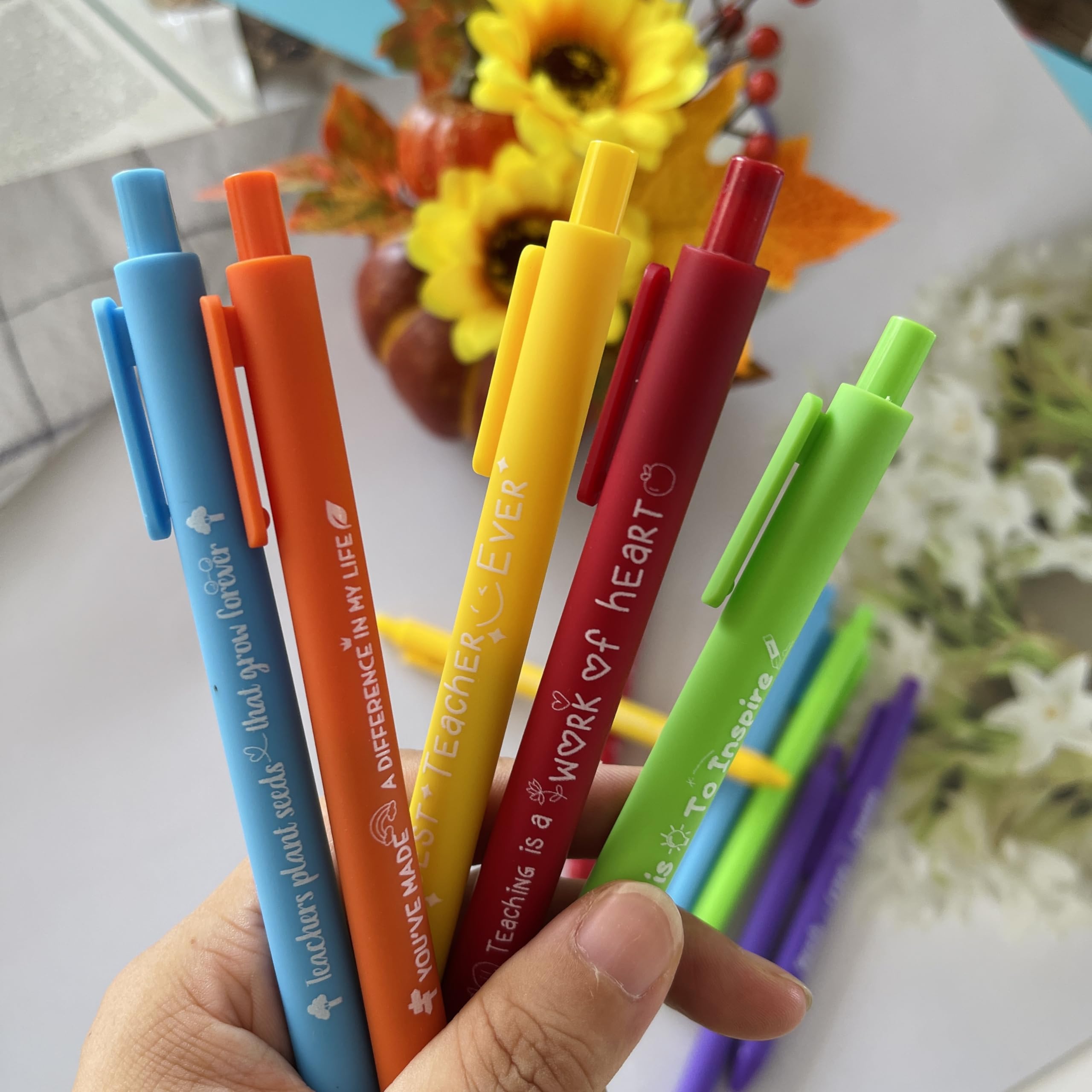 Brighten Their Day, One Pen at a Time 🌈 Inspiration on Demand: Each pen features a unique, uplifting quote – from "Teaching is a Work of Heart" to "You Planted Seeds That Grow Forever". Premium Quality, Budget-Friendly: Unlike flimsy novelty pens, these have durable plastic barrels and smudge-proof ink that lasts. Versatile Use: Perfect for classroom rewards, staff room essentials, or back-to-school survival kits.