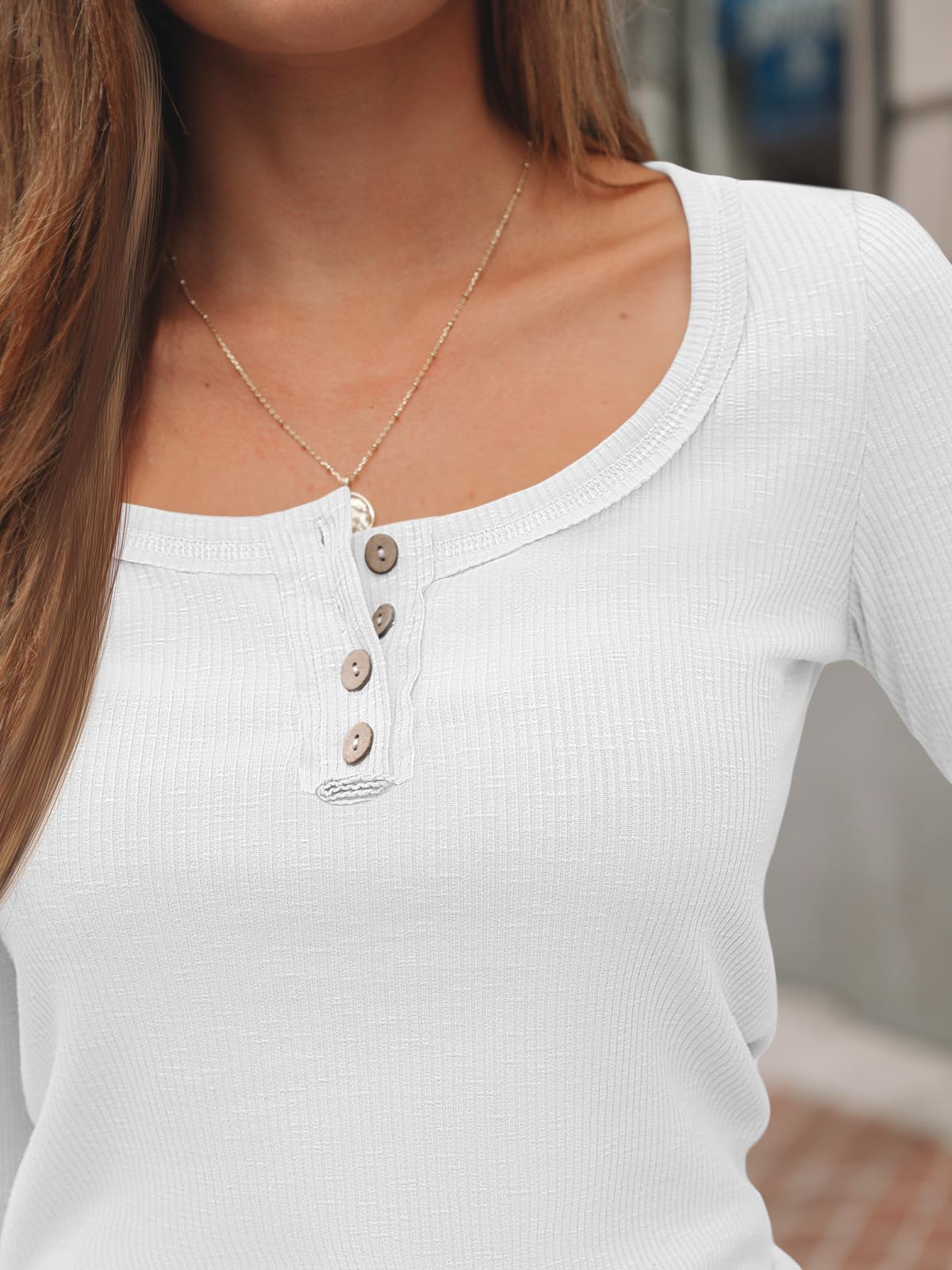 Design: Henley long sleeve shirts, button details on sleeves, ribbed knit structure and plain-colored design, the neckline button can be adjusted at will to create a sexy v-neck or scoop neck. Are all further eye-catching details