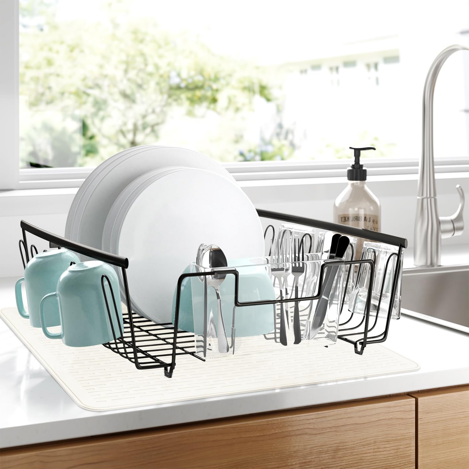 Kitchen Drying Mat:The unique design of wide raised line ridges increases air circulation, improves ventilation, and catches drips from dishes, glasses, fruits, and vegetables. The high edges and waterproof bottom keep the countertop dry and clean, making it an ideal kitchen drying mat.