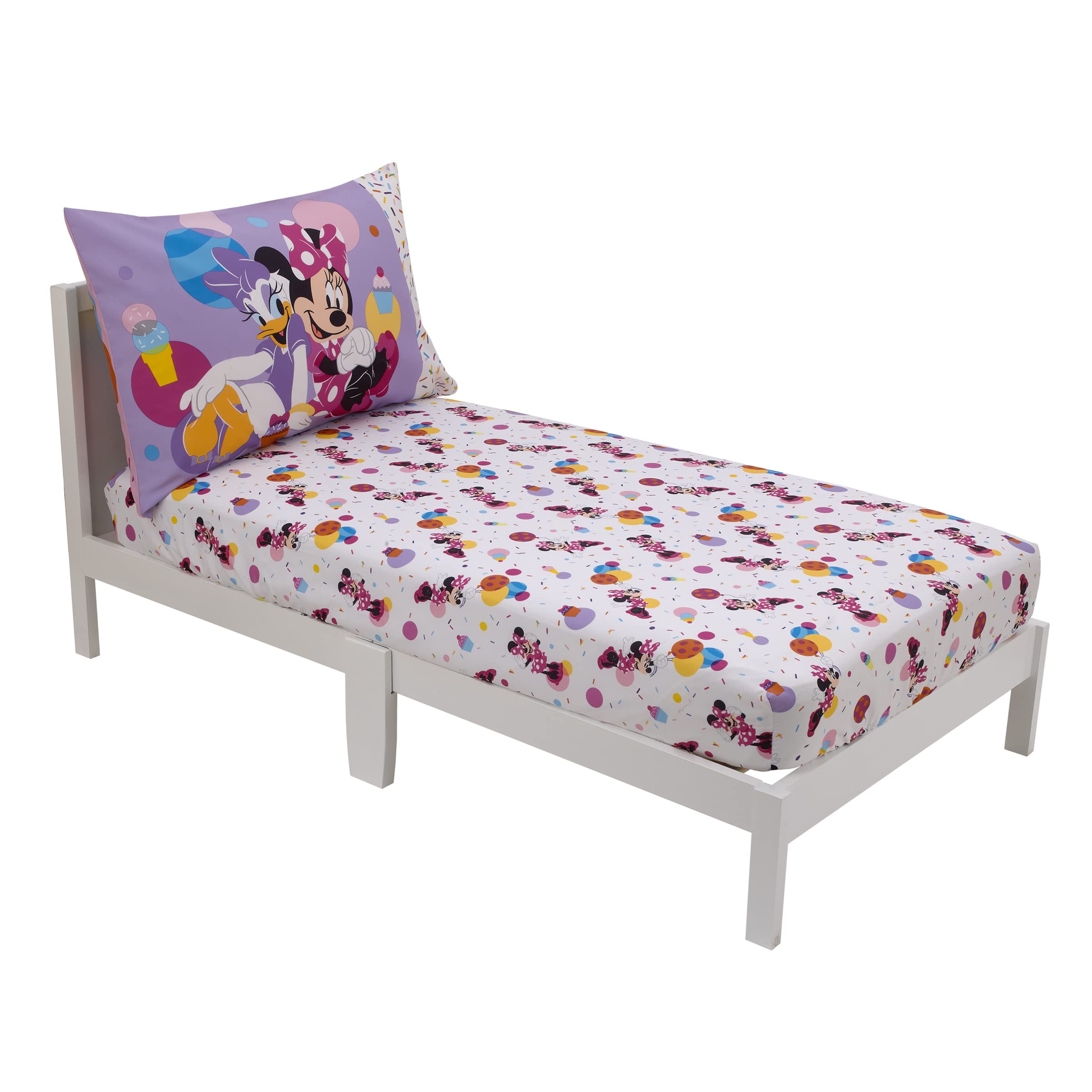 This 2-piece toddler sheet set includes a fitted bottom sheet and reversible pillowcase
