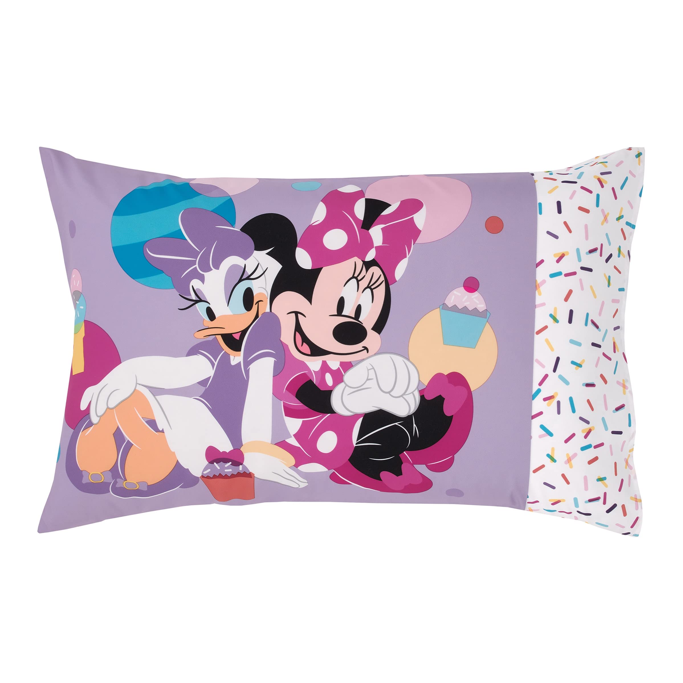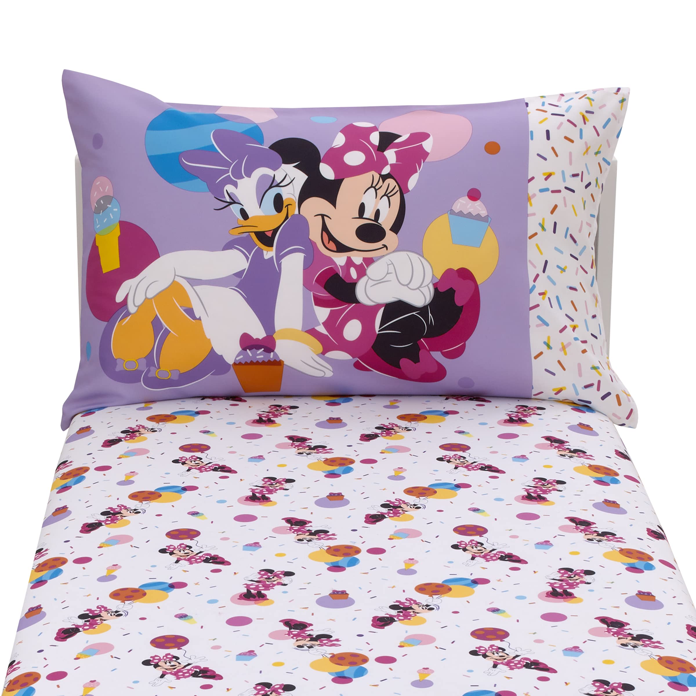 Features a fun pattern with Minnie Mouse, balloons, cupcakes and confetti