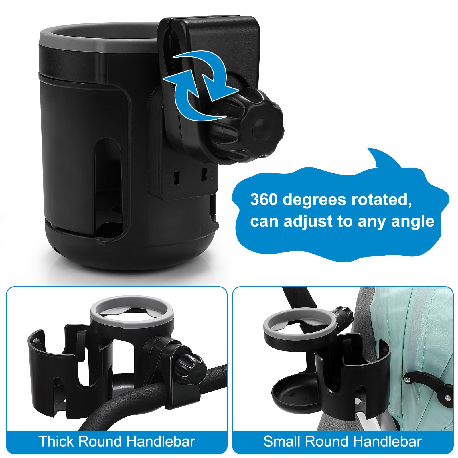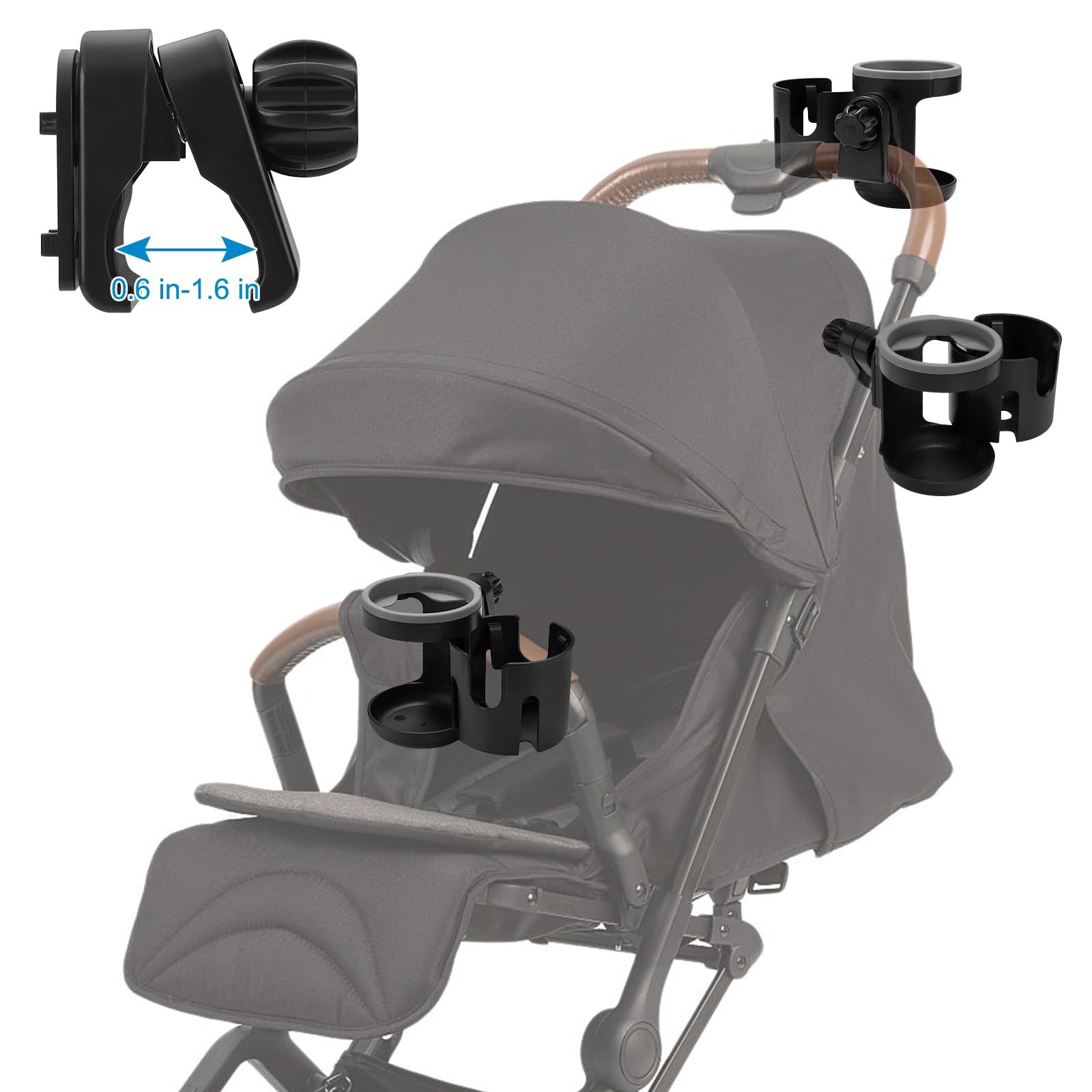 360 ° Rotatable Clamp: The clamp allows for 360 degree rotation, so it can install on different angle as your need. The holder clip range is 0.6-1.6 in, the width of the clip can freely adjust and firmly clamp on the stroller rod to avoid sliding easily.