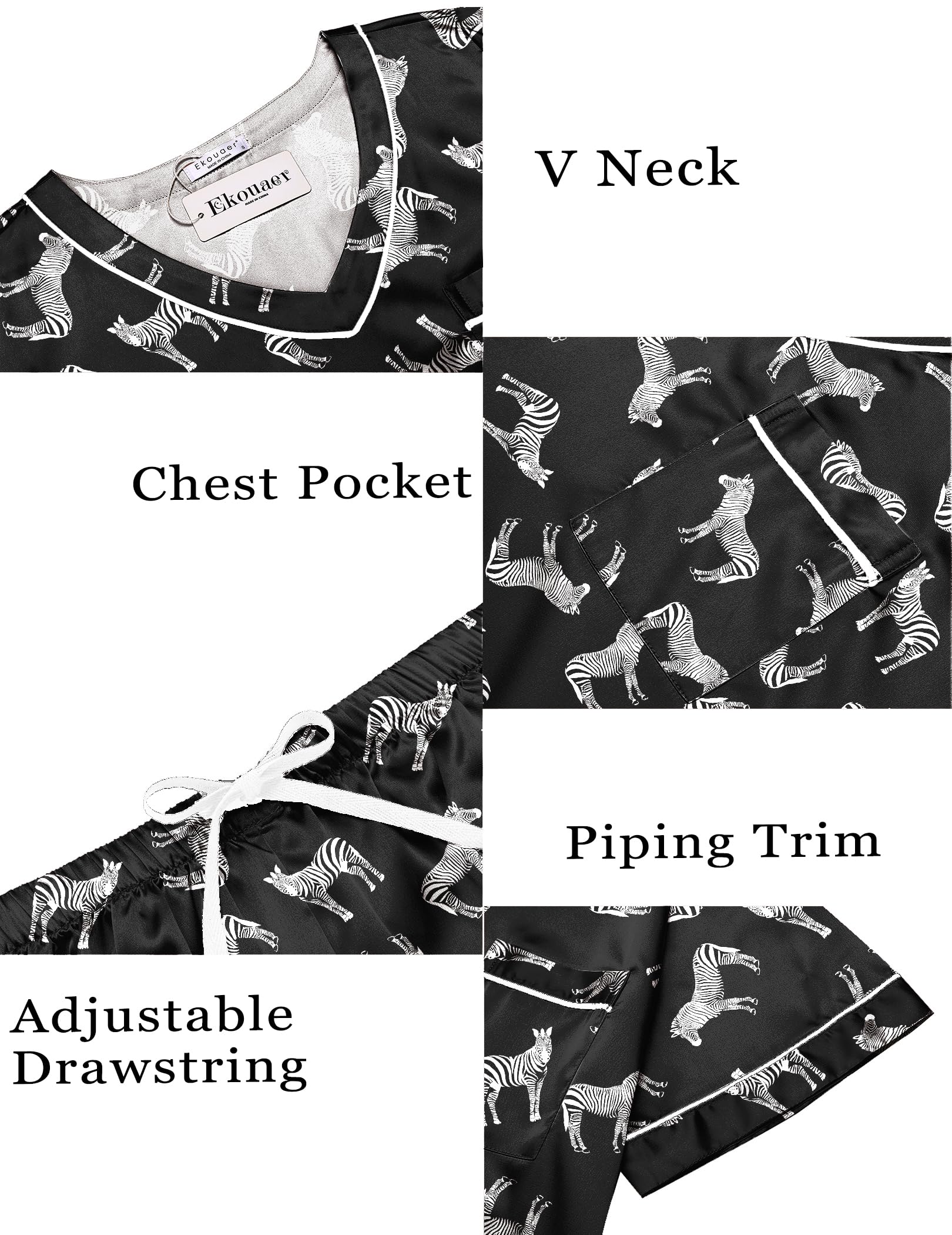 Silk Pajama Set: Ekouaer satin pajamas set made of 95%Polyester & 5%Spandex, soft, lightweight and breathable. Not easy to wrinkle and fade