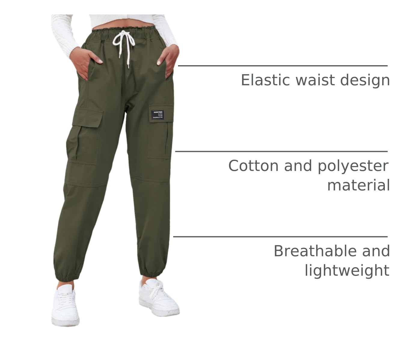 Features:Solid color & pattern,high waist,elastic ankle cuffs and tapered leg.Multi pockets are convenient and practical for you to carry the small things.