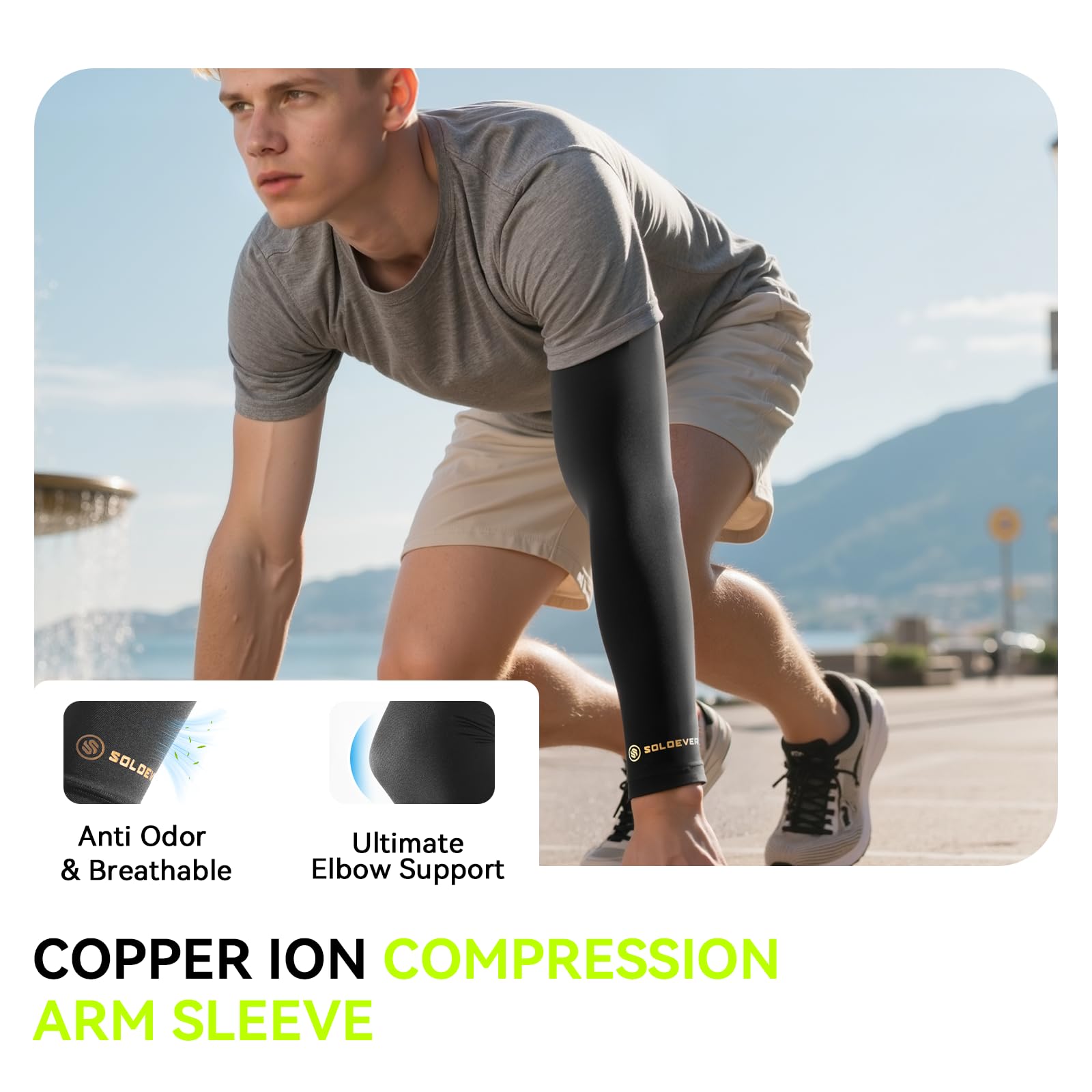 🏃♂️【DURABLE ALL-DAY SUPPORT】 The Copper Compression Recovery arm sleeve delivers consistent pressure and support all day. Whether you're working with heavy equipment, doing your gym weightlifting routine, hiking, running, or playing sports like baseball, basketball, soccer, golf, tennis, and volleyball, these compression sleeves for men and women are comfortable enough to wear even while you sleep.