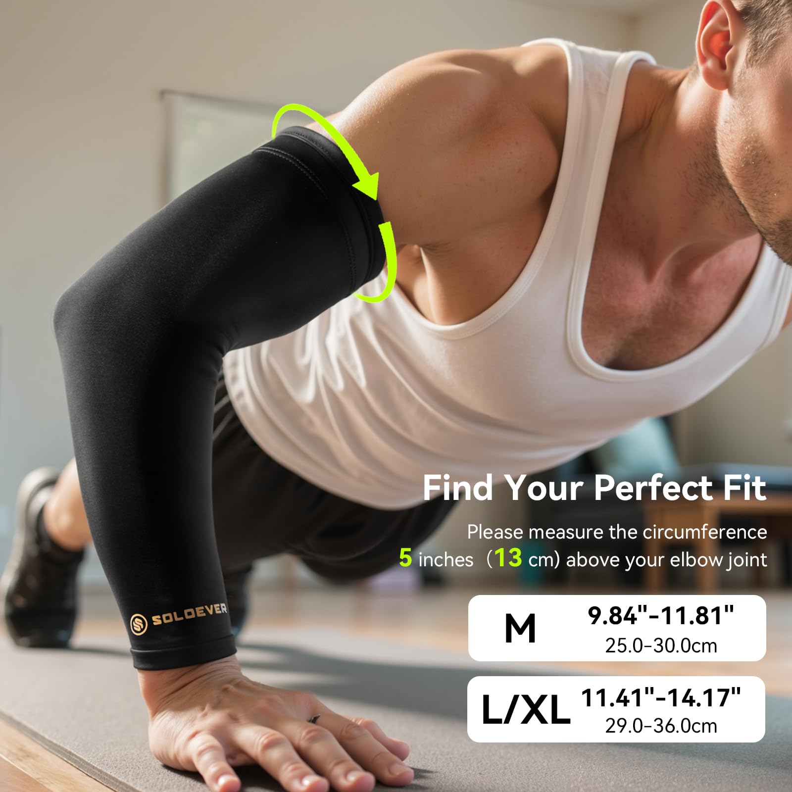 📏【AVAILABLE IN TWO SIZES FOR A PERFECT FIT】 Choose from M (9.84”–11.81”) and L/XL (11.41”–14.17”). Measure the circumference of your arm around the middle of the bicep—usually around 5” above the elbow. Refer to our size chart to get the right fit. Compression products work best when they're snug. Select the larger size for a lighter compression effect, or choose the smaller size for a more intense compression. 1 sleeve per pack.
