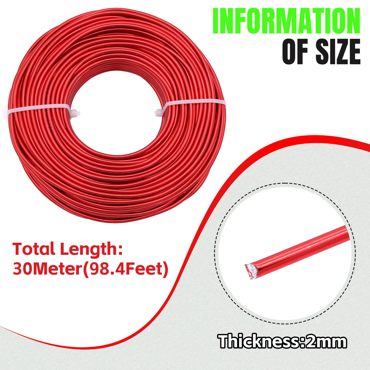 【ALUMINUM CRAFT WIRE SIZE】: 14 Gauge(2mm) in thickness, 100 Feet (30m) in length,Red