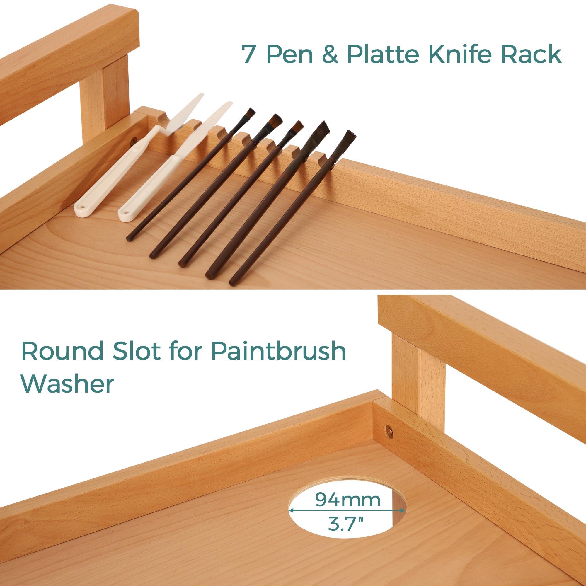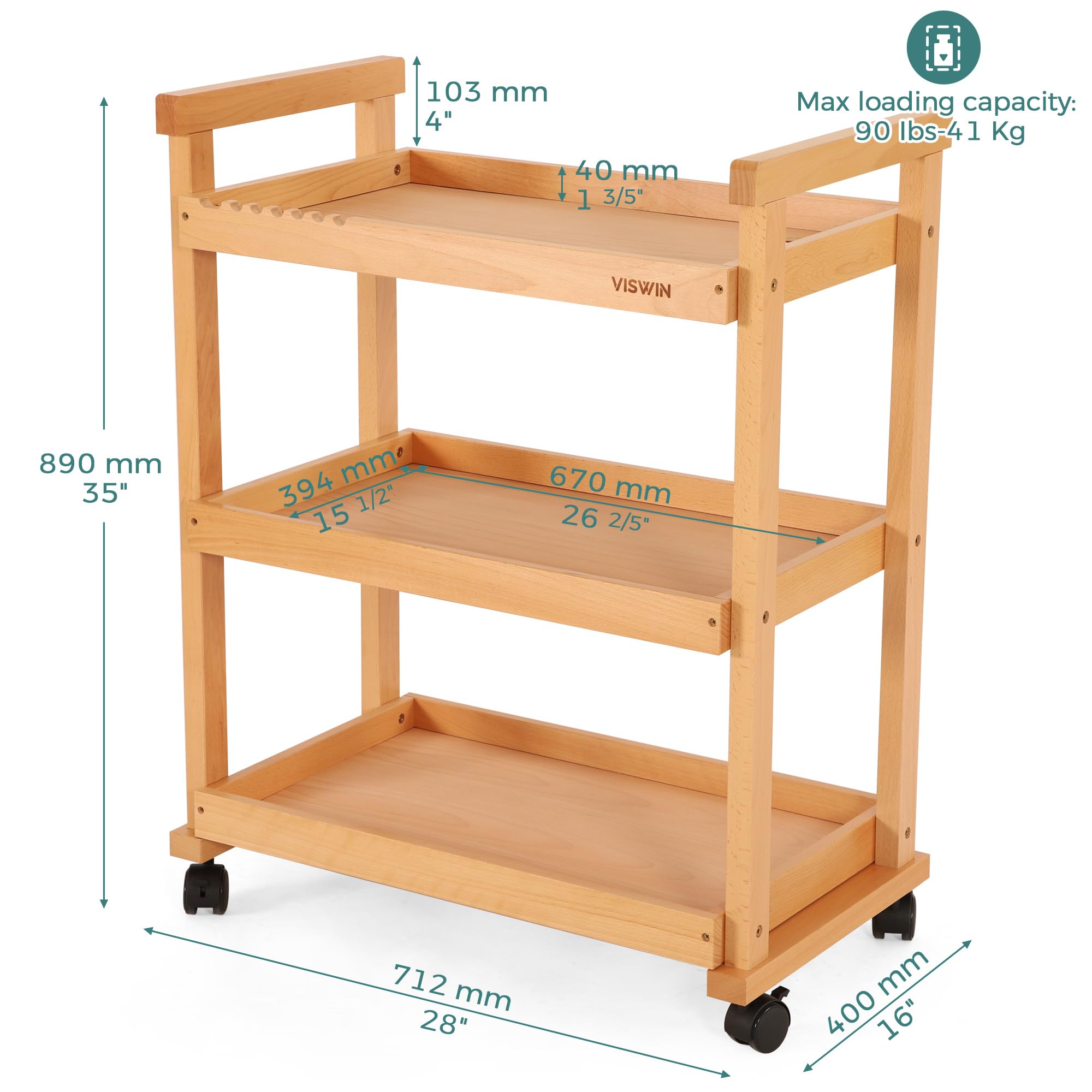 SOLID BEECHWOOD CRAFT CART: The art supply storage organizer is made of high-quality beech wood with sturdy hardware for solidity and durability. This rolling art cart has a weight capacity of 90 pounds and can fully bear everything you need to place. Hand-polished corners ensure maximum safety