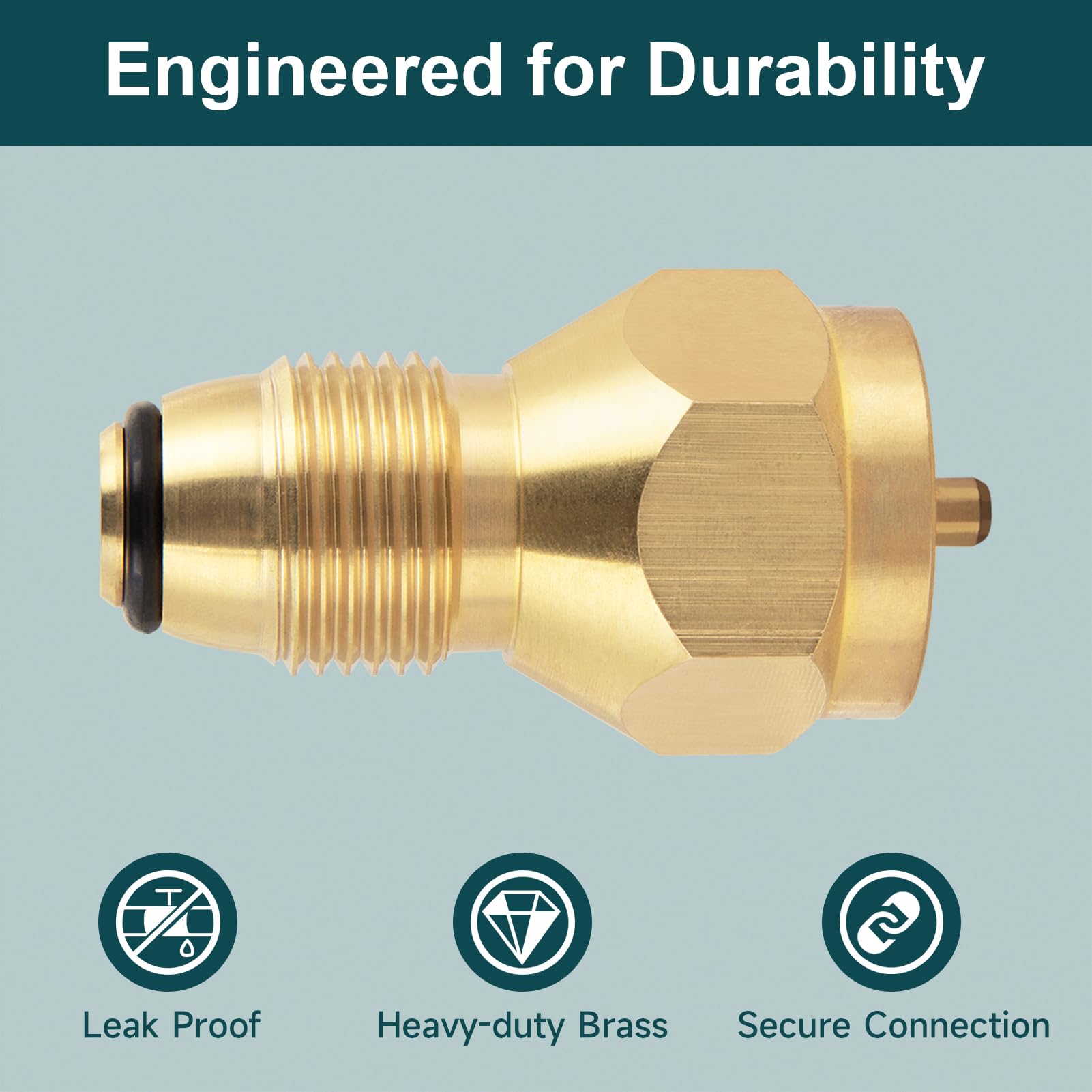 Safety Features: Equipped with an overflow preventer, this propane adapter stops the gas flow at the correct pressure, ensuring safe operation