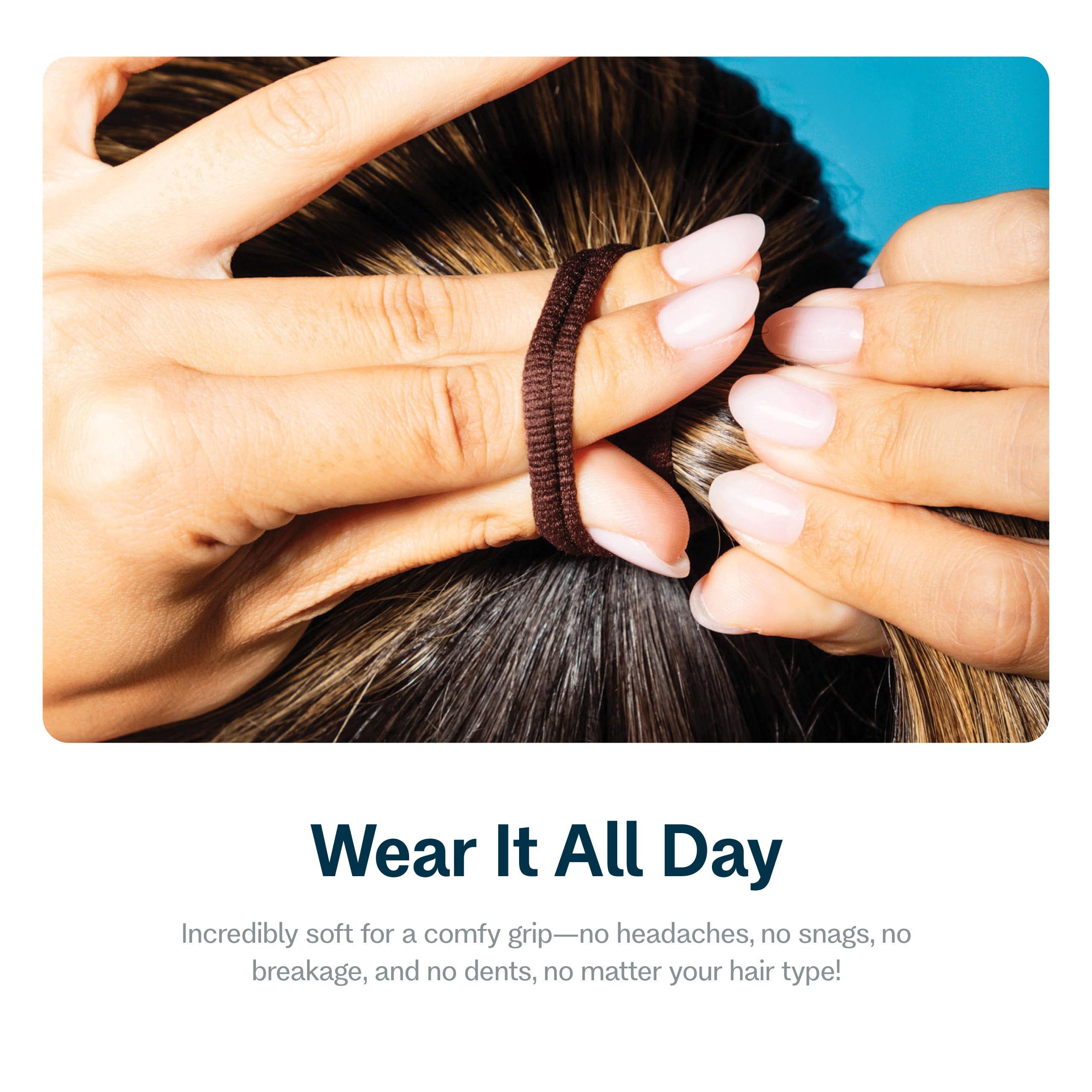 Gentle Hold: Seamless construction eliminates snagging and breakage; specially engineered elastic bands distribute tension evenly for comfortable all-day wear, boasting a gentle hair tie feel
