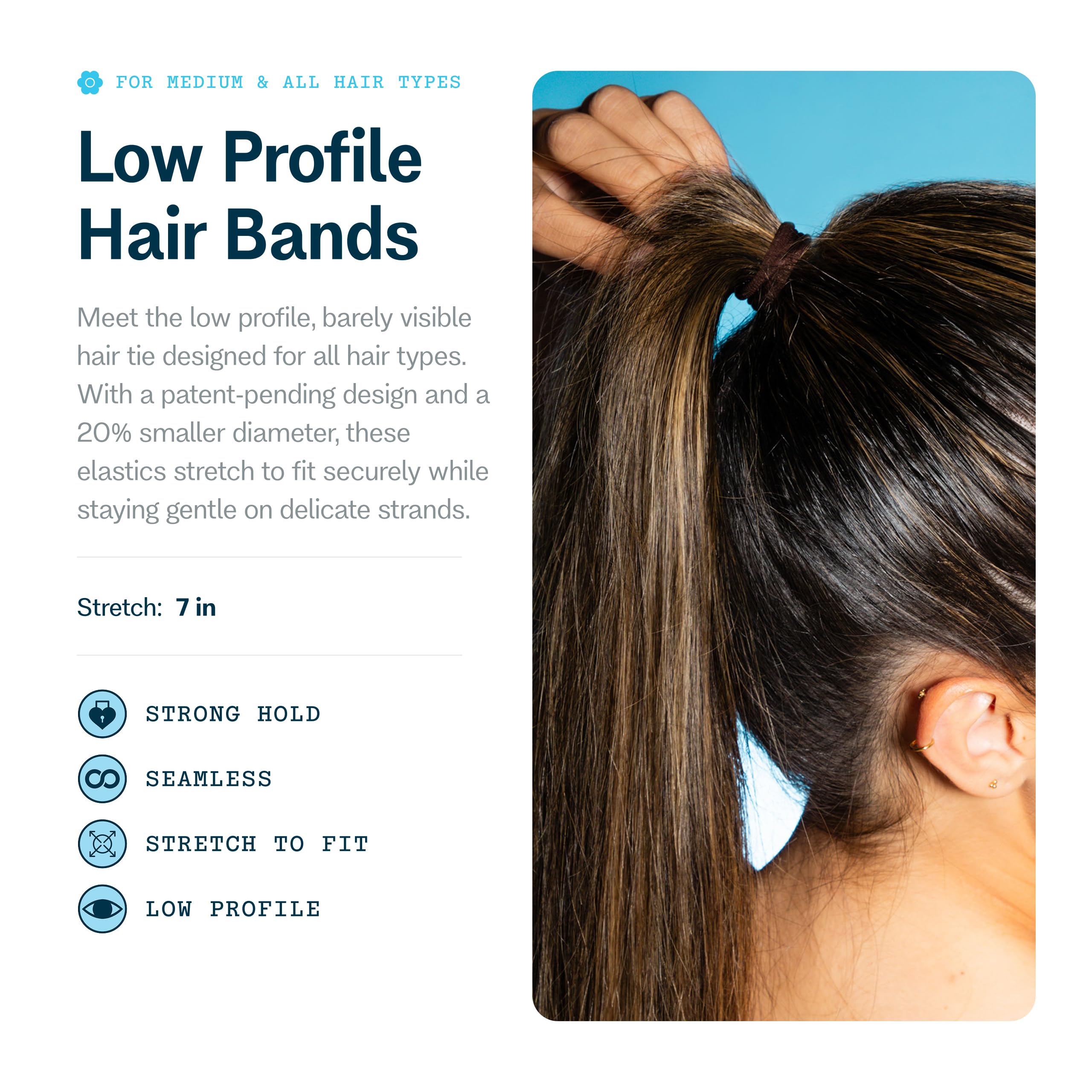 Introducing the perfect balance of hold and comfort with Gimme Beauty's Low Profile Hair Bands. These thoughtfully designed hair ties combine innovative seamless construction with premium elastic materials to deliver reliable hold without compromising your hair's health.Each hair band features our signature ultra-thin profile, making them virtually invisible in your hairstyle while maintaining impressive strength. The specialized elastic material provides consistent tension that keeps your style secure without the typical pressure points or damage associated with traditional rubber bands. Whether you're creating a sleek ponytail, casual bun, or intricate braid, this versatile hair accessory adapt to your styling needs.Our professional-grade hair ties are engineered specifically to prevent common hair concerns. The seamless design eliminates snagging and pulling, while the premium elastic maintains its shape and grip through repeated use. The low-profile construction makes these bands particularly suitable for fine hair, though they're equally effective for thick, textured hair types.Perfect for gym workouts, office looks, or casual styles, these women's hair bands deliver consistent performance while treating your hair with the gentleness it deserves. Experience the difference of trendy hair accessories designed to enhance your styling routine.At Gimme Beauty, we believe hair solutions aren't one size fits all. We understand that each person's hair journey is unique, which is why we've designed these hair ties to work for all hair types, helping you feel confident and unstoppable in your daily life.We celebrate the sisterhood that grows from our shared experiences with hair. While some brands focus on exclusivity, we believe in creating accessible, inclusive products that work for everyone. Our mission goes beyond hair accessoriesβwe're here to amplify your confidence because we know that confident women are unstoppable.