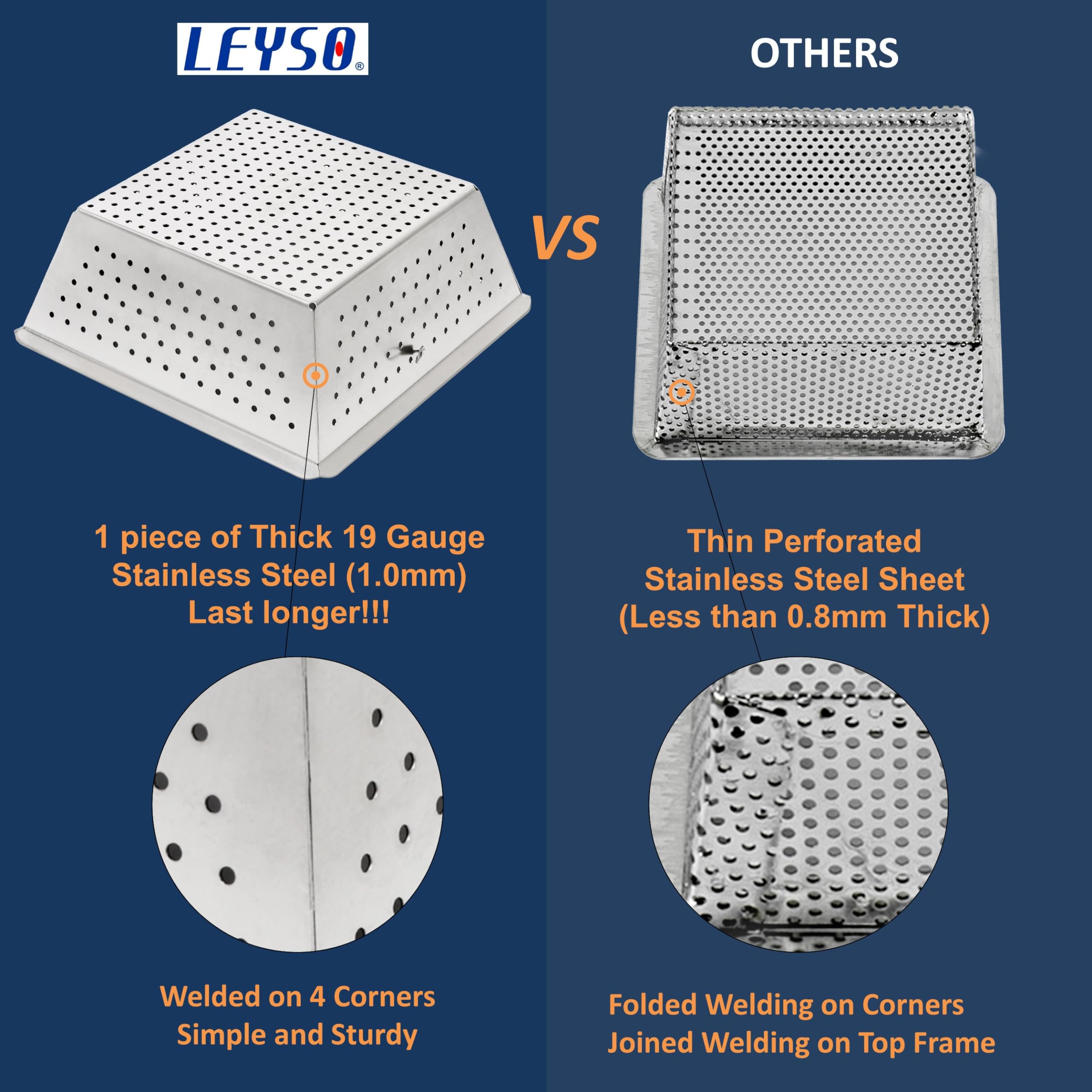 [Durable] - Made from all heavy duty 19 gauge (1.0mm) Type 304 stainless steel, laser welded 4 corners firm construction. This floor sink basket is 1 piece seamless stainless steel structure for longer lasting and more durable compared to other thinner 0.8mm material.
