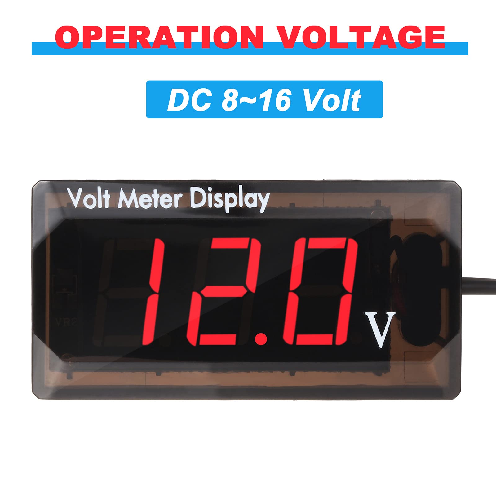 DC 12V car digital voltmeter gauge: two wire voltage detection; No separate power supply is required; Mini size with 3 digit LED digital display; Simple connection, easy to use and waterproof