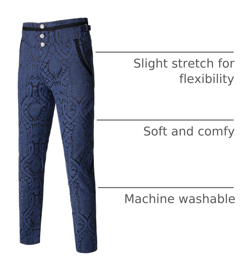 Occasion:Suitable for steampunk-themed,wedding,cosplay,fashion show,various holiday celebrations,rock party,Theyβre also comfortable enough to wear as casual pants.