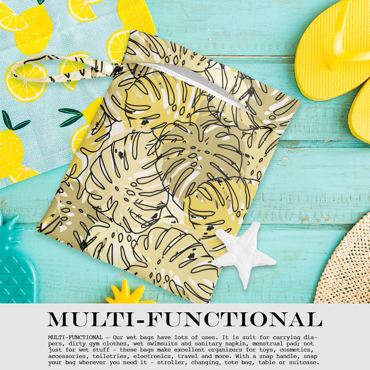MUST-HAVE - This bag is not only a wet bag, but also a makeup bag, sanitary napkin bag, wash bag, coin purse, snack bag, travel bag, storage bag, cosmetic bag, handbag, cloth diaper, smell proof backpacks, swimsuit bag, beach bag.