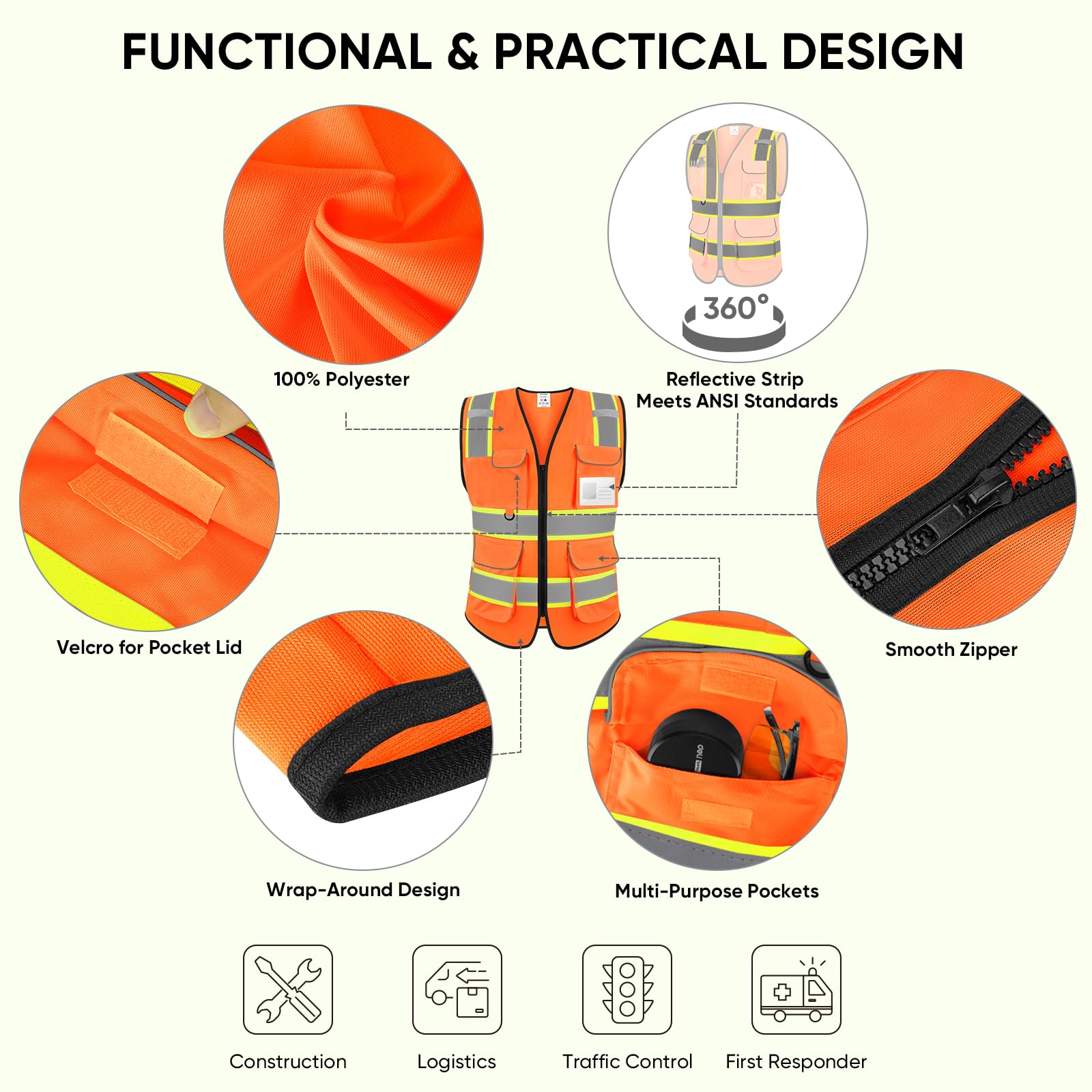 [WIDE APPLICATIONS] Our safety vest for men and women who get the job done. Great for construction workers, truck drivers, warehouse workers, traffic controllers, and first responders.