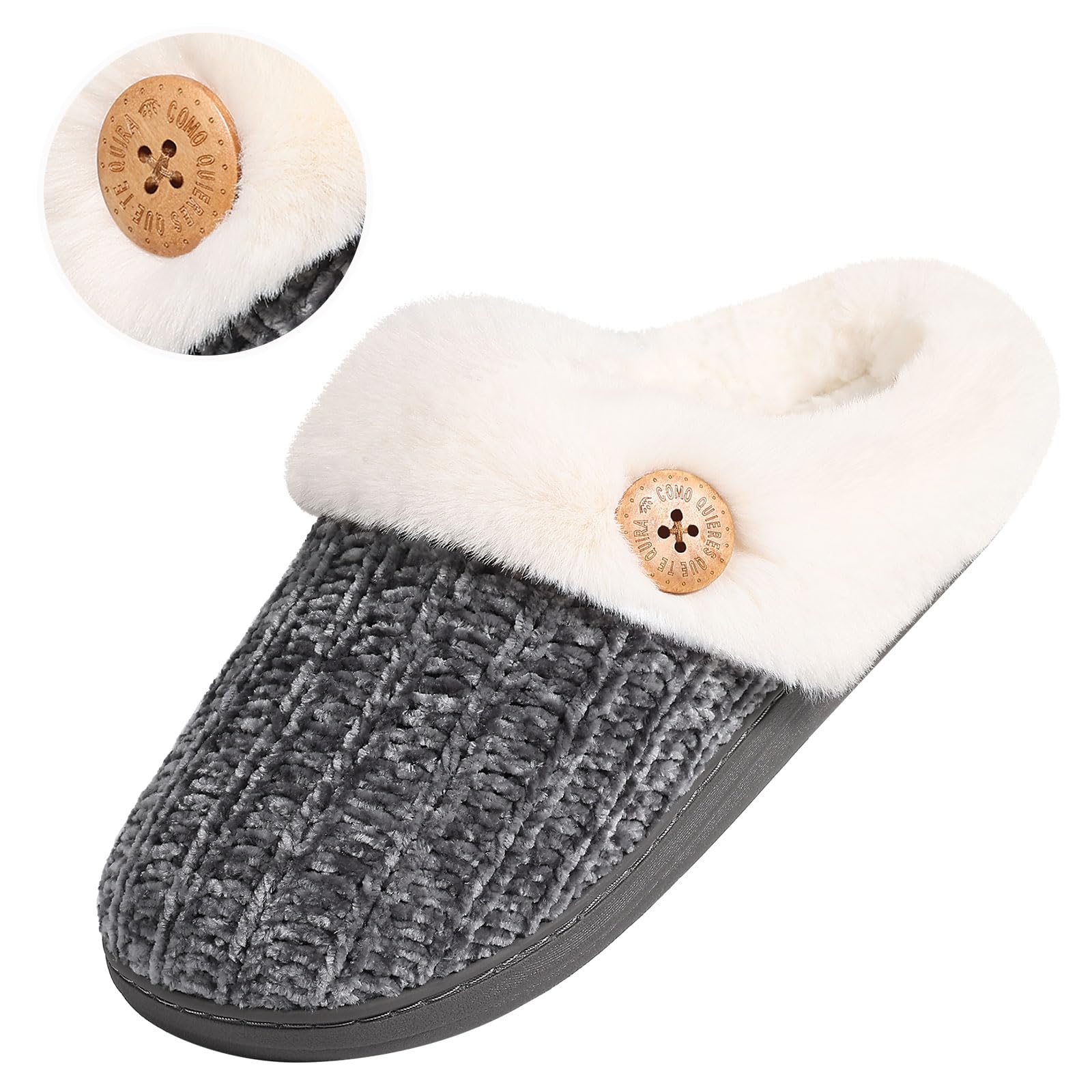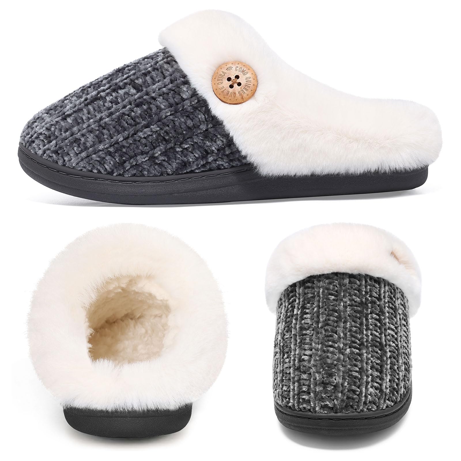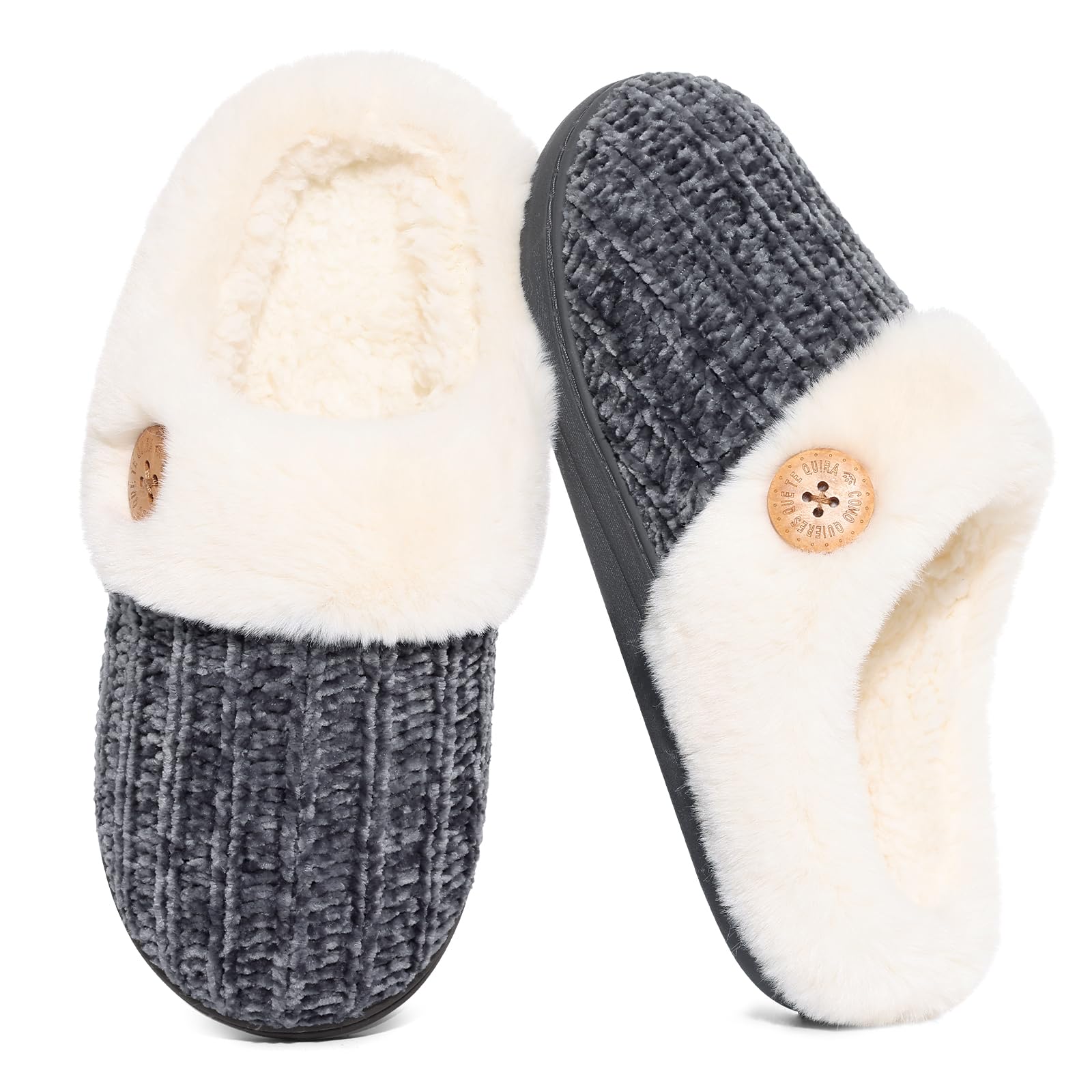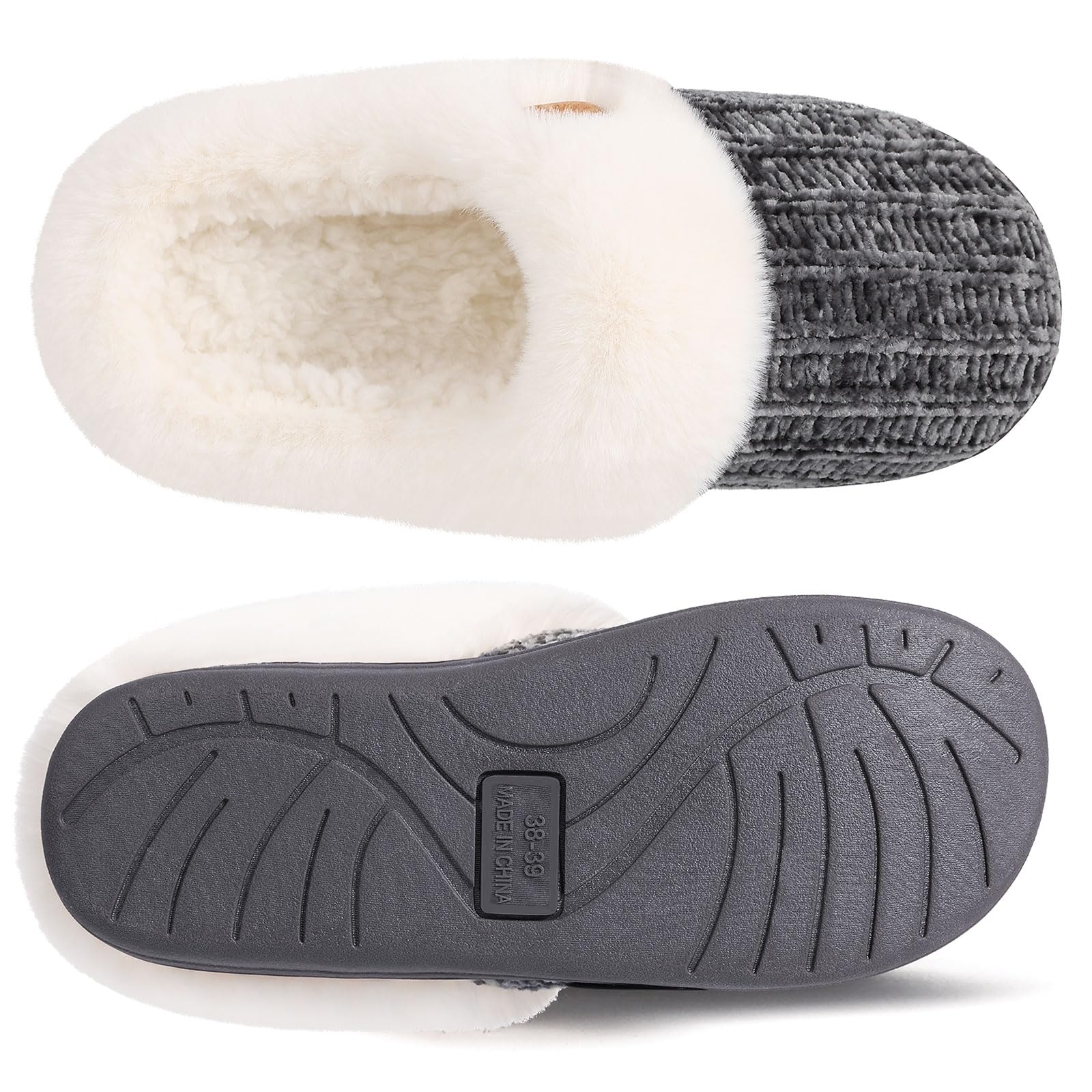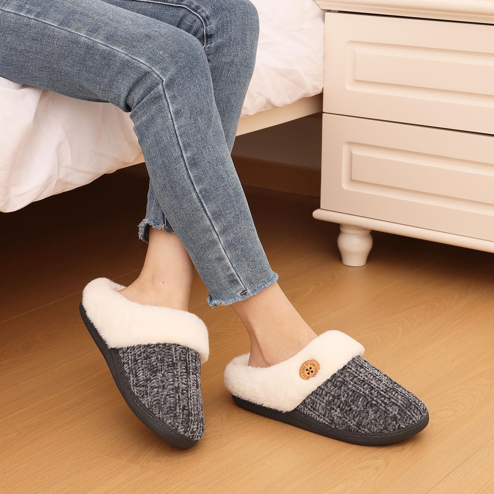 𝐖𝐨𝐦𝐞𝐧'𝐬 𝐂𝐥𝐚𝐬𝐬𝐢𝐜 𝐊𝐧𝐢𝐭𝐭𝐞𝐝 𝐒𝐥𝐢𝐩𝐩𝐞𝐫𝐬: Our women's slippers feature a breathable chenille knit upper gorgeously crafted with a thick inner lining of premium wool-like. Experience ultimate warmth and comfort while keeping your feet cozy.