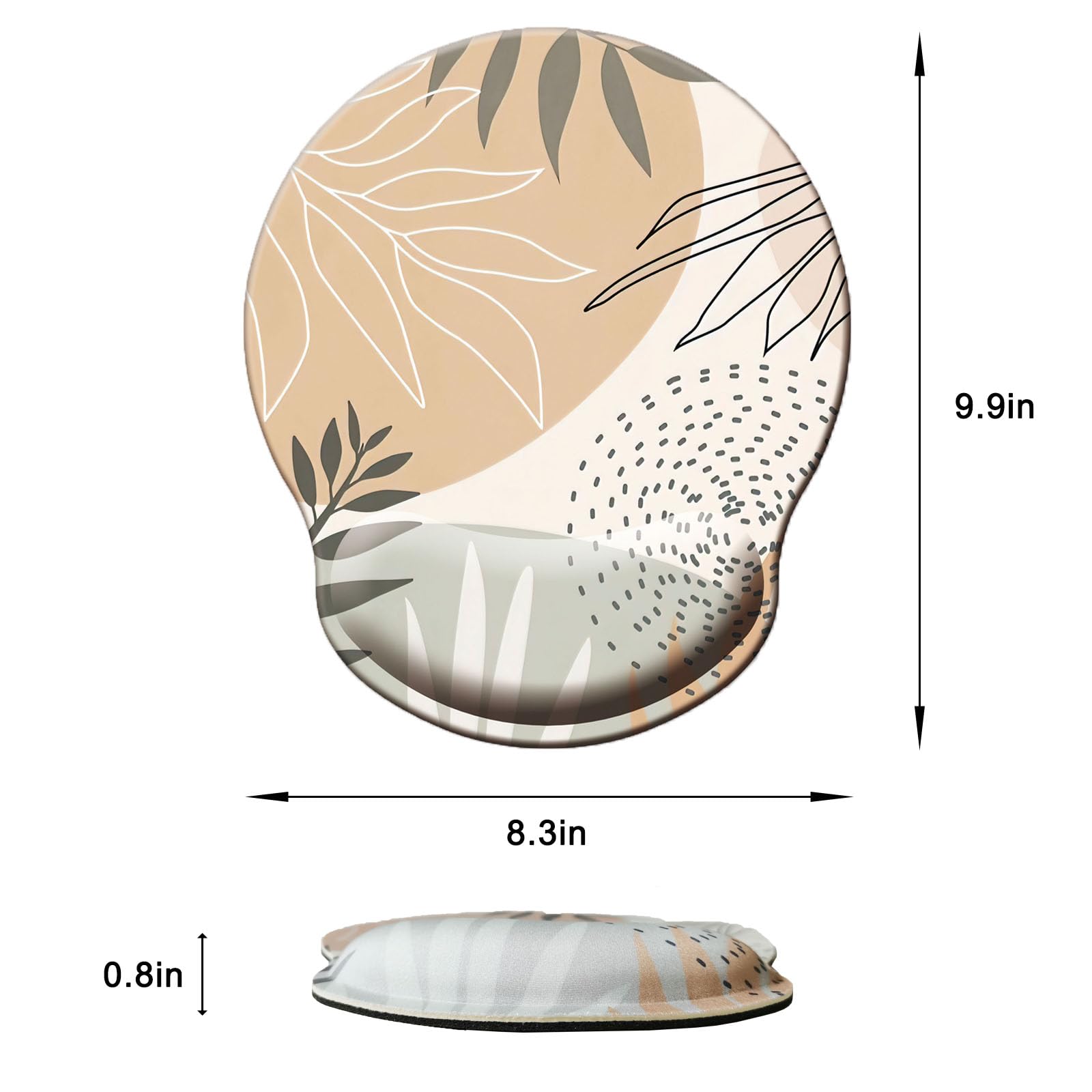 ERGONOMIC - Approximately 9.9 in x 8.3 in, 0.8 in thick. The reinforced edges are not easy to deform and damage, no curl up on edges. Ergonomic soft wrist rest mouse pad provide good touch and comfortable support for your wrists. Keep arms, wrists, and hands from getting sore when using computer for long time.