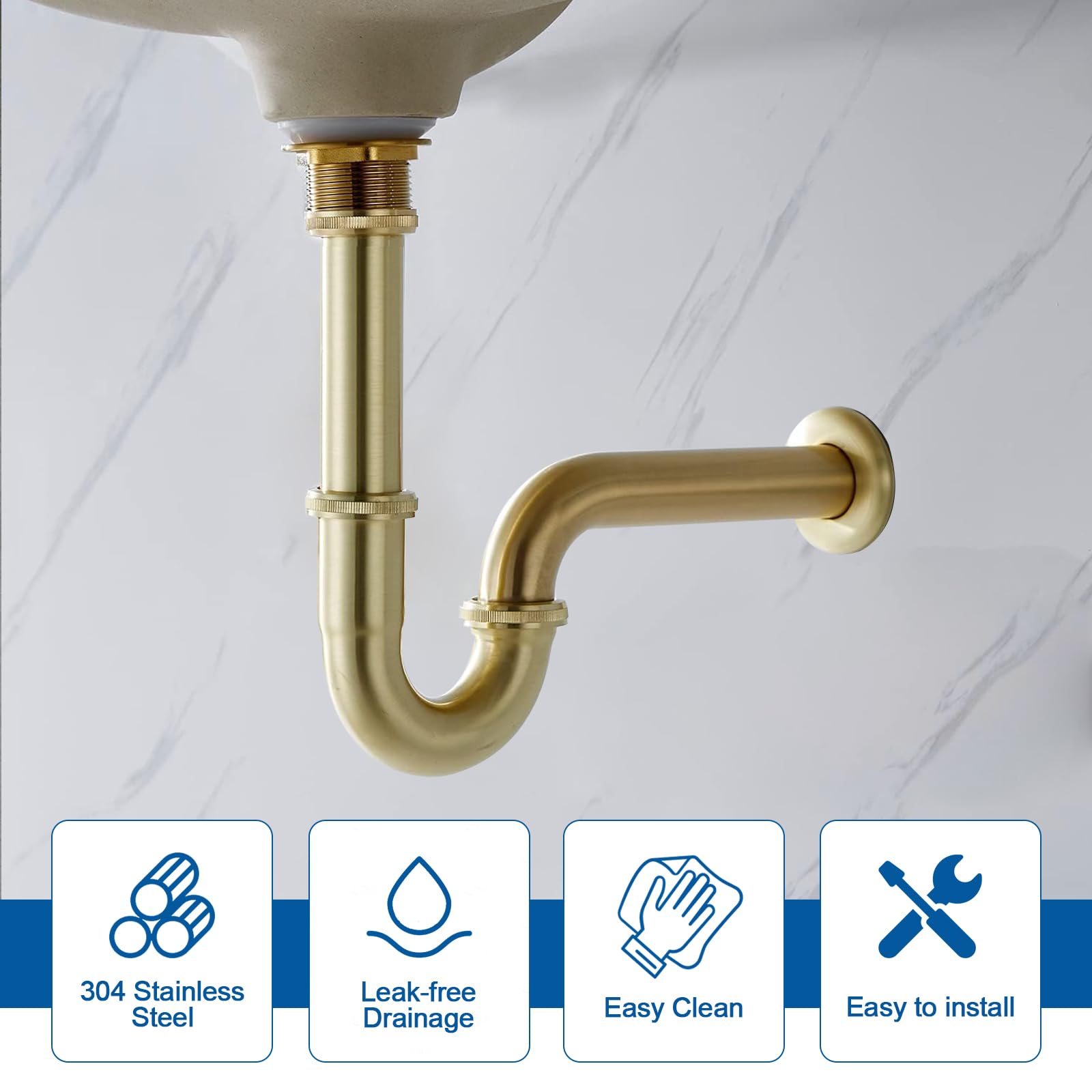 【High Applicability】The Sink Waste Trap Drain Kit is designed to fit the US plumbing standards with its 1-1/4" diameter slip inlet and 1-5/8" joint out. This means it can be easily installed and connected to most bathroom basin sinks without any hassle.
