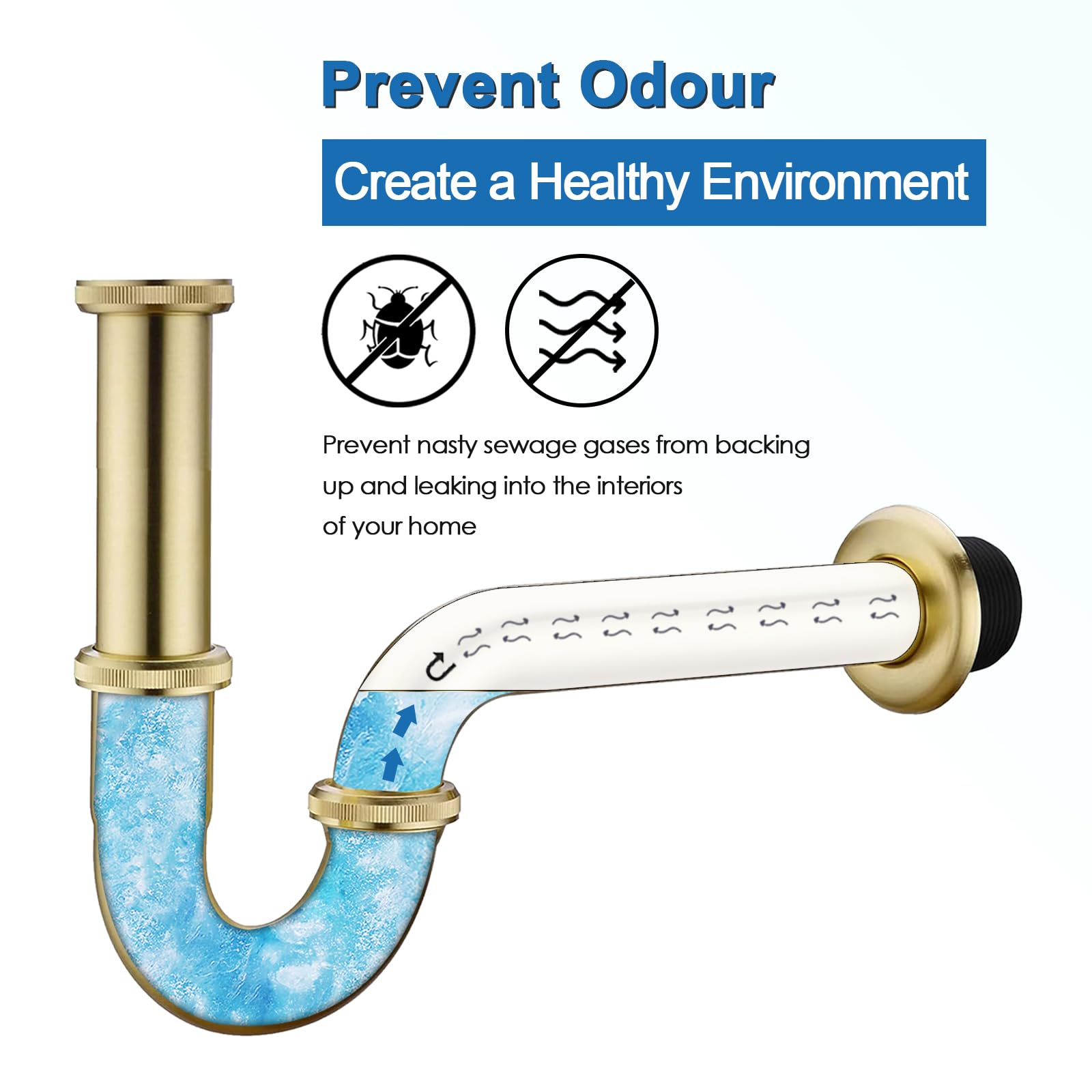 【Say Goodbye to Odor】With its efficient design, The straight waste pipe flows into a cup shaped vessel where the water is collectioned, preventing odors from being released. Creating a healthy and odor-free environment in your bathroom.