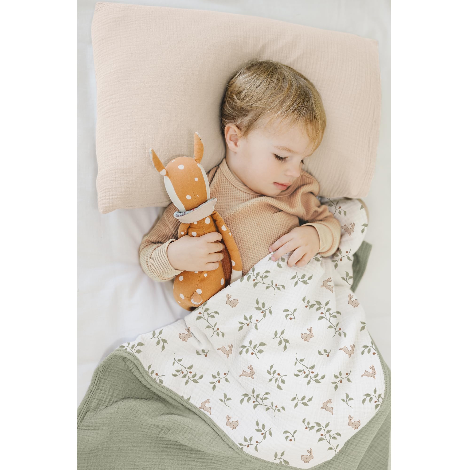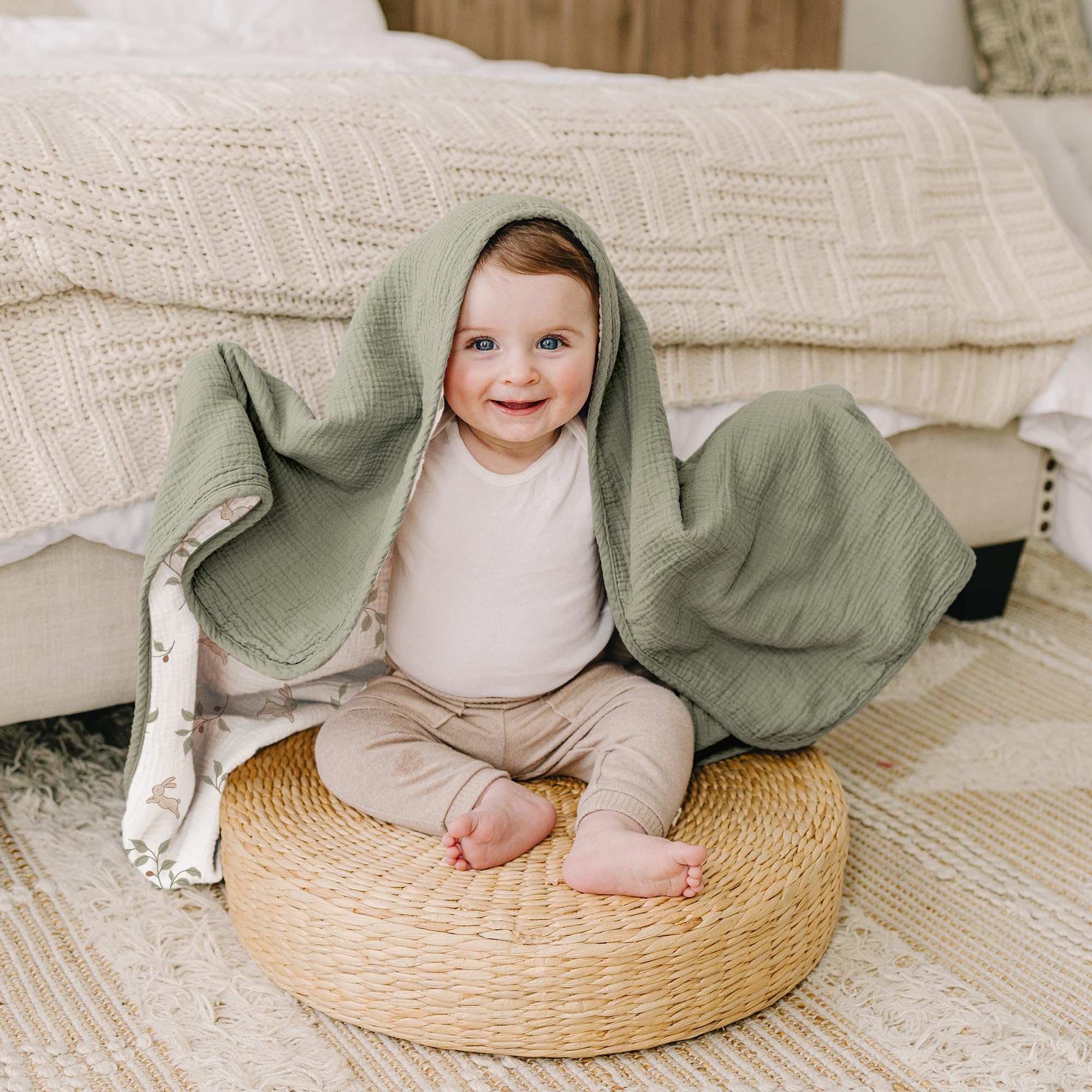 Versatile Use: This blanket is generously sized at 40x36 inches to provide ample coverage to keep your toddler cozy and content. Whether it's for naptime, cuddling time, or simply snuggling up on the couch, our muslin toddler blanket is perfect for any occasion.