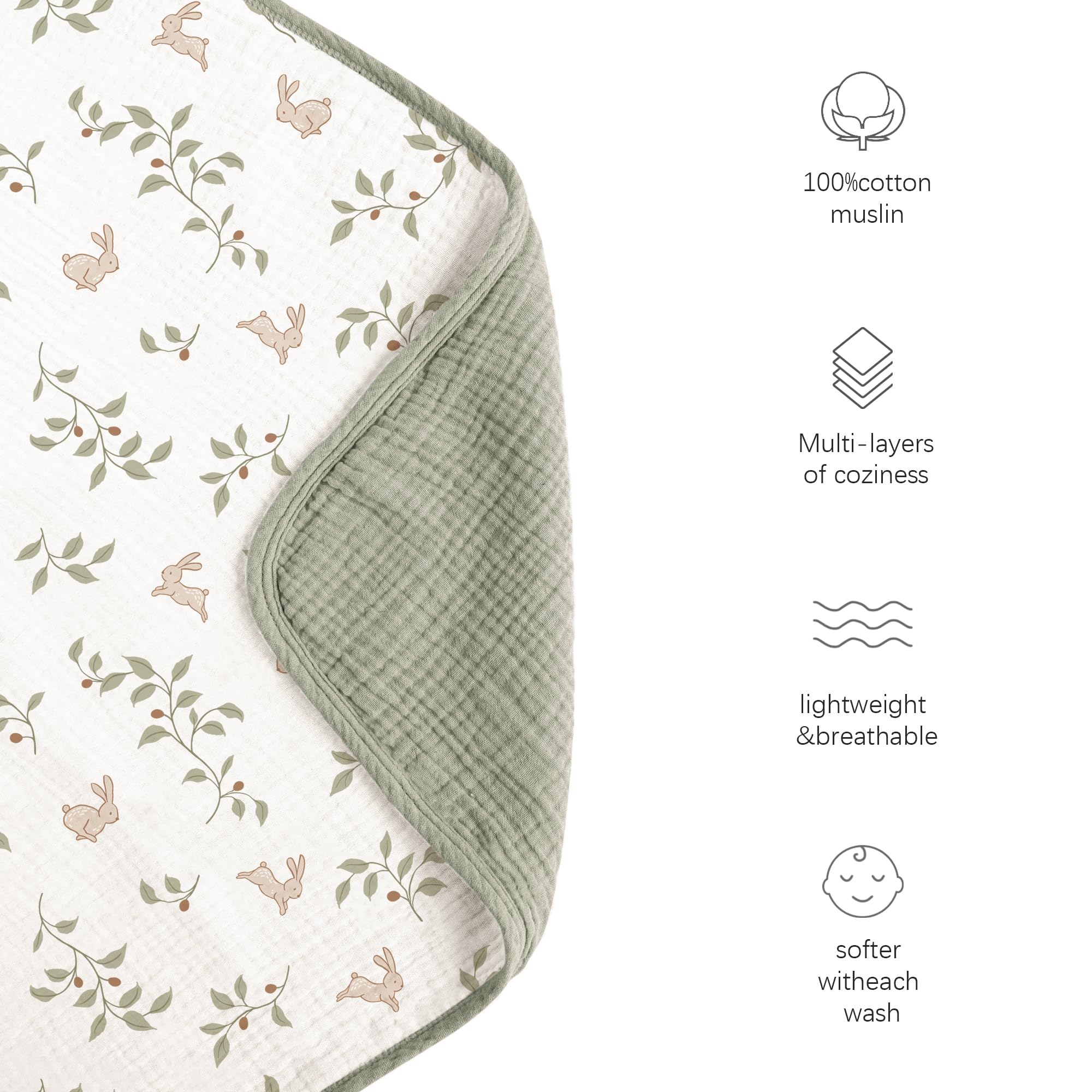 Superior Softness: Crafted with care from high-quality muslin fabric, our toddler blanket is super soft and are gentle on your child's delicate skin. The soft material would be softer as the time goes by.