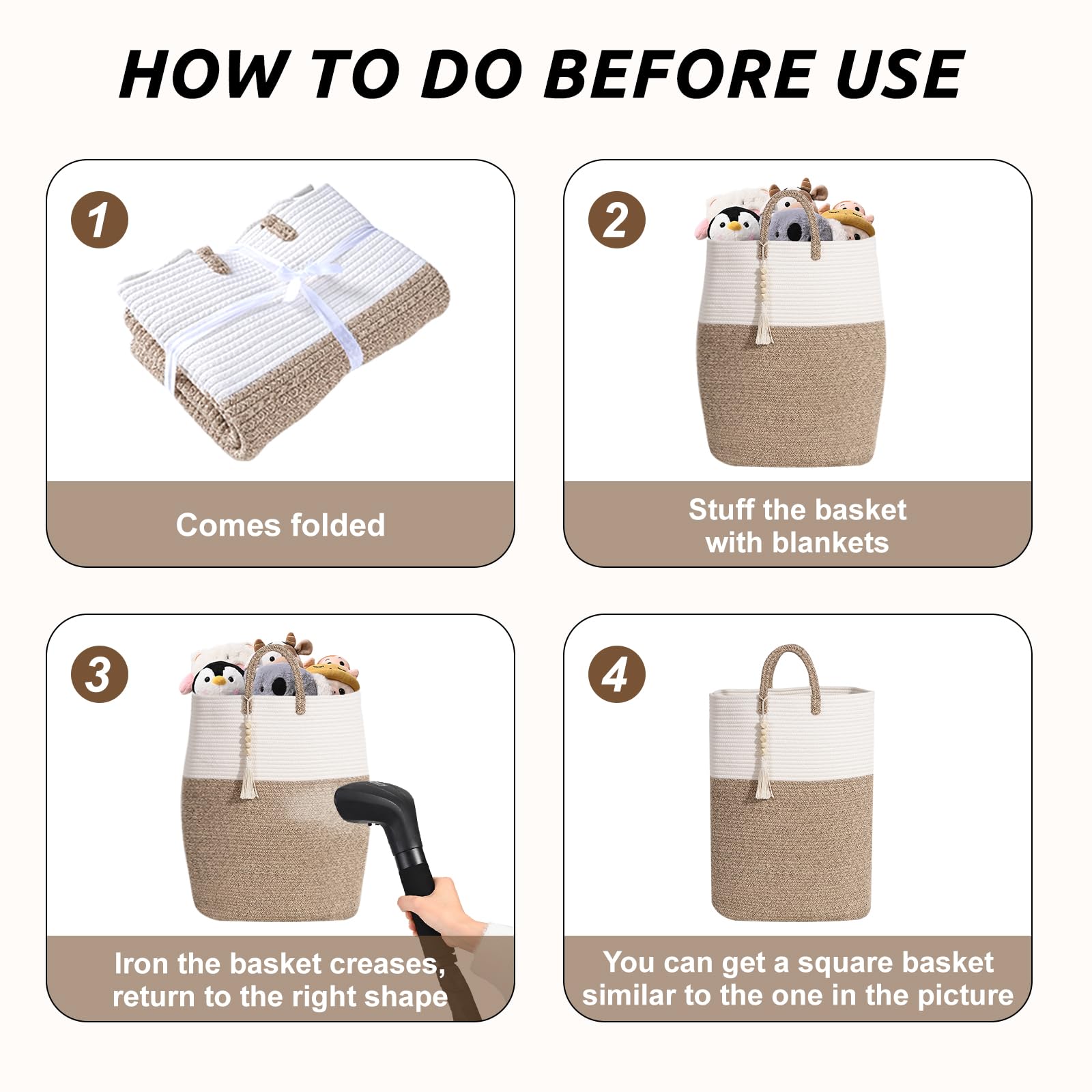 💌[WELL-STRUCTURED & EASY RE-SHAPING]: Heavy duty flexible rope cotton basket was made really strong and it's very durable, tall woven basket can also maintain its shape after use. To recover to it's original shape, fold-able basket is better to fill with some items, like blankets and then steam it with an iron.