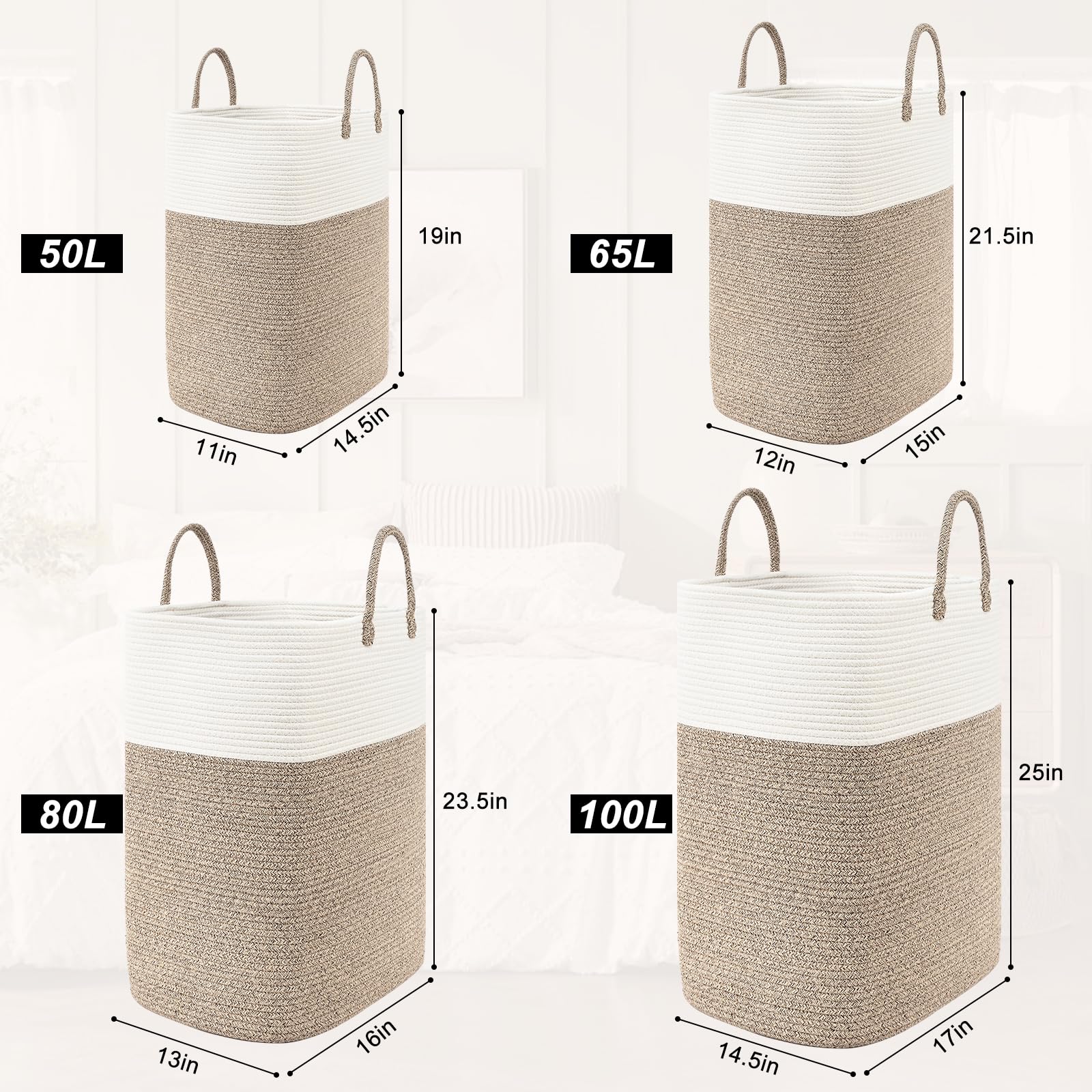 🌻[SPACIOUS STORAGE & FOLDABLE BASKET]: Laundry basket with 50 L, 65 L, 80 L, 100 L capacities that effortlessly accommodates your different laundry needs, allowing you to store your clothes conveniently. Tall storage basket also foldable, making it easy to store away when not in use.