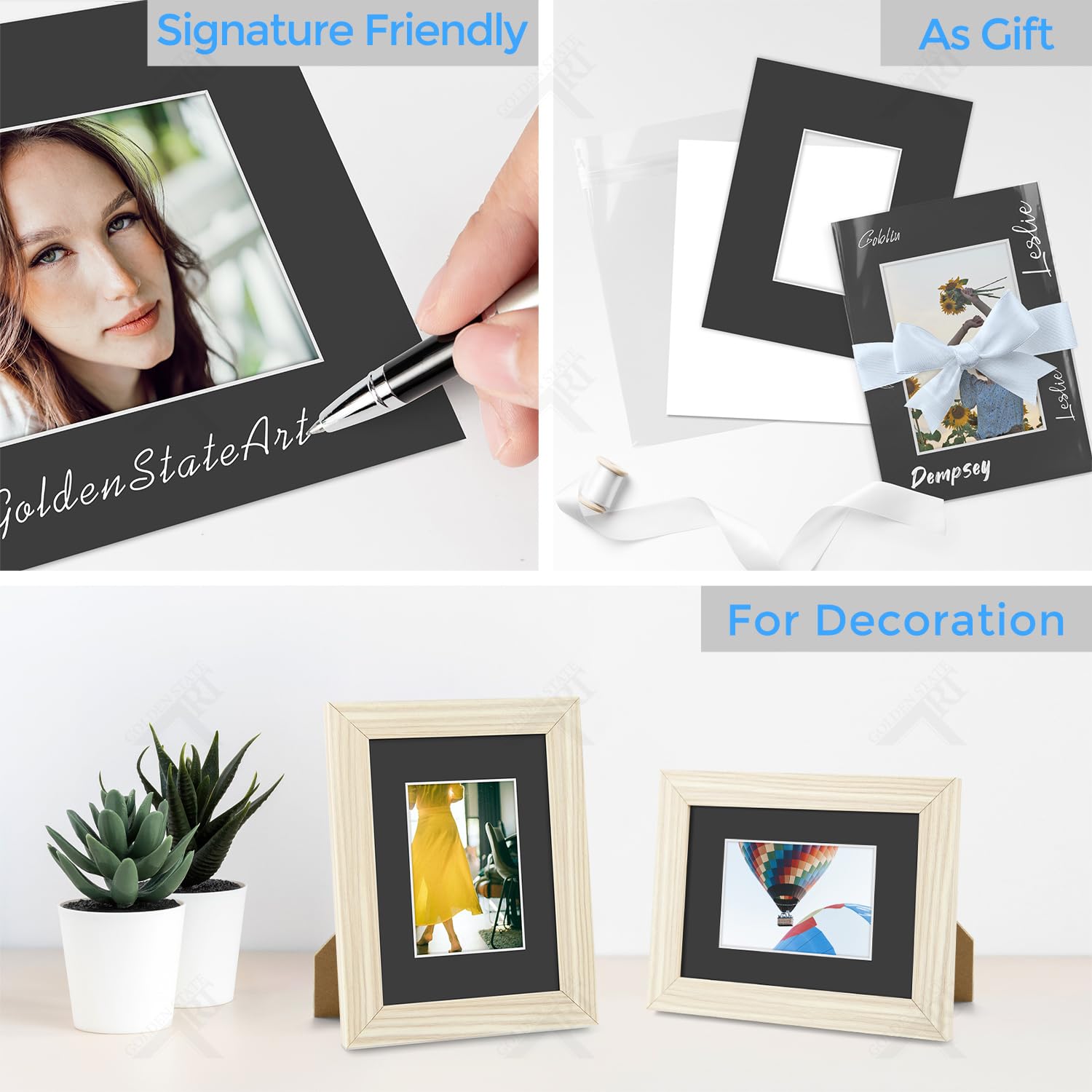 The opening size is 3"x4.5" for 3.5x5 print; Color: Black