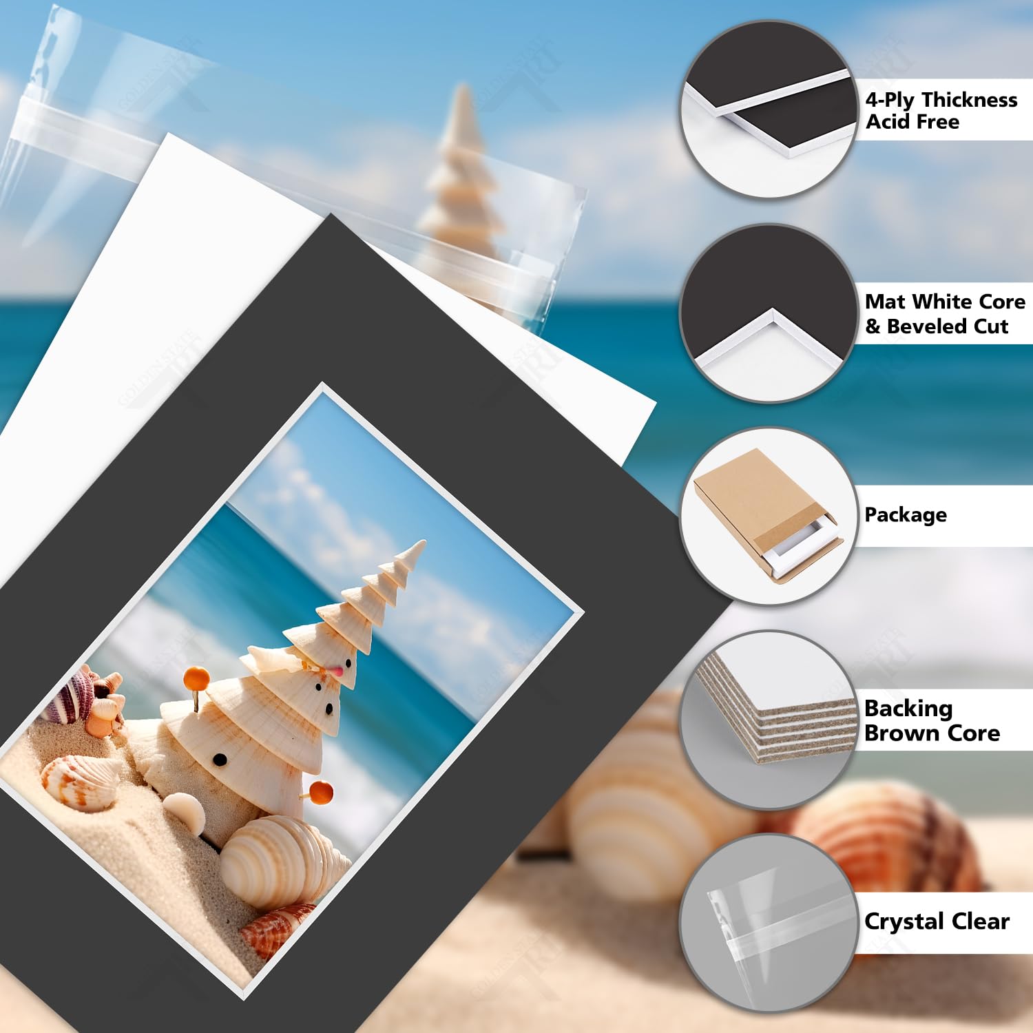 This item comes With 5 pre-cut mats, 5 backing boards and 5 clear sleeves. The opening size is 3"x4.5" for 3.5x5 print. The mats are beveled cut. The backing is also 4-ply. The re-sealable adhesive strip of the clear bag is below the opening of the bag instead of on the flap. Our acid-free whitecore Mat Boards are A 4-ply papermat that provide the aesthetic and design benefits of A bright white bevel. It can be used for matting photos, art, and needlepoint. Also great for crafts, backboards, signs, children's projects, and school projects.