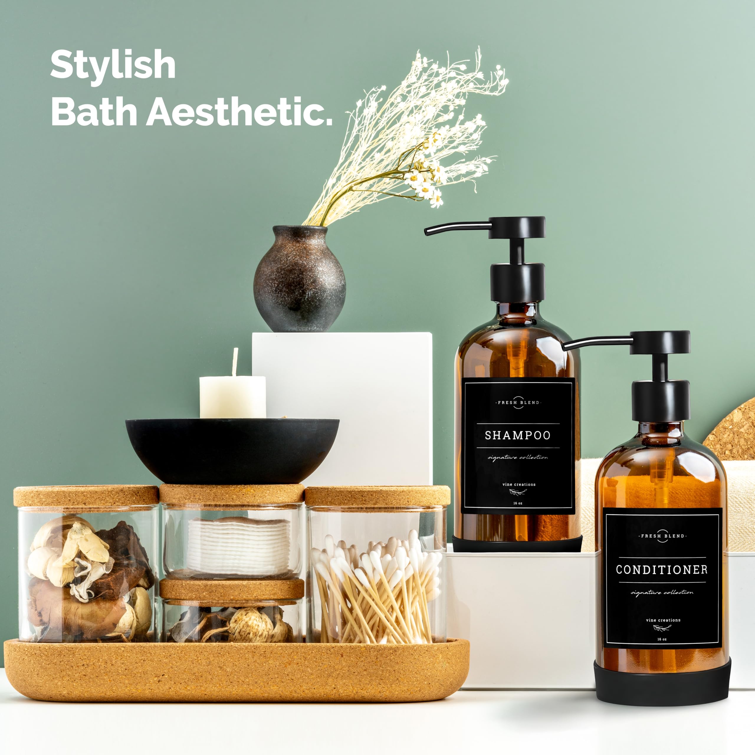 PREMIUM WATERPROOF LABELS & NON-SLIP SLEEVES - Includes 14 high-end, waterproof labels (7 black and 7 white) for hand soap, dish soap, shampoo, conditioner, body wash, face wash, and hand lotion. It also includes two durable, non-slip silicone sleeves, providing an extra layer of protection.
