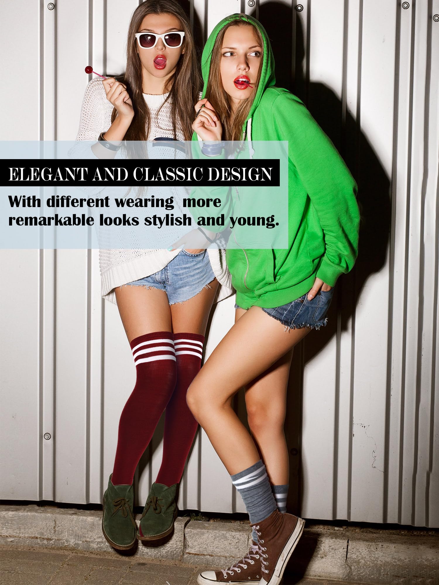Different Wearing Ways: you can wear the stripe stocks as thigh high socks, fold them as over knee stockings or slouch socks, different wearing ways make you look more attractive and charming