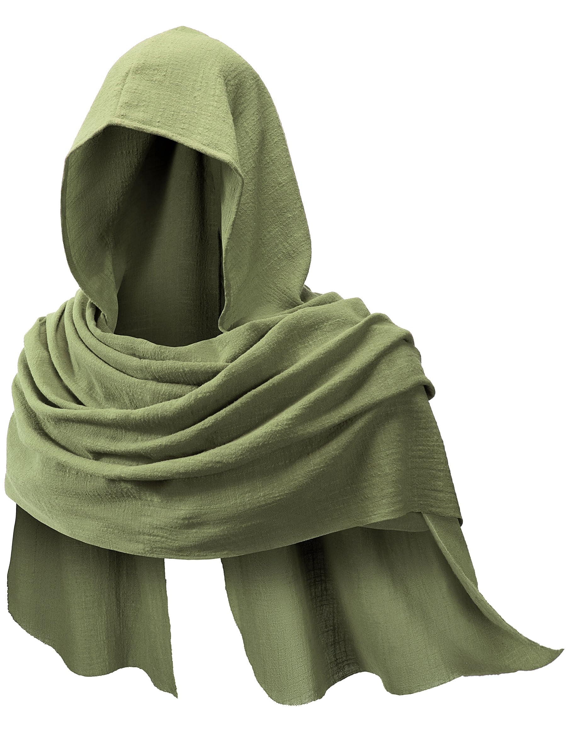 Classic unisex hooded cowl scarf, it has multi purpose,as a head wrap,a toga,hooded pagan,shawl,cowl,cape,medieval costume outfit accessories and so on,suitable for various application scenarios as cosplay,LARP(live action role playing),Halloween,theme parties and so on.