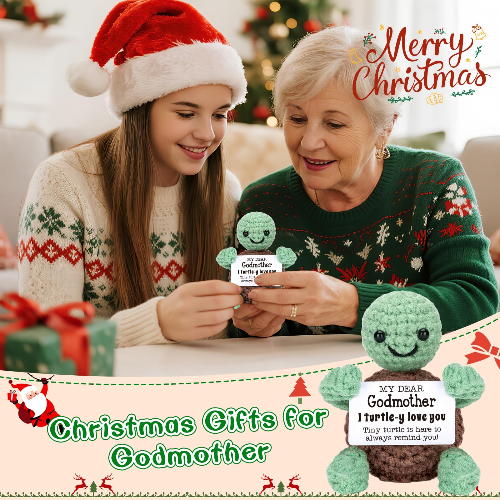 Godmother Christmas Gift: Each knitted turtle about 2.3 x 1.4 x 3.5 inches, matching with card, compact and fit perfectly in pockets or backpacks, easy to carry; Mini turtle acts as forever accompany will cheer you up and give you emotional active support