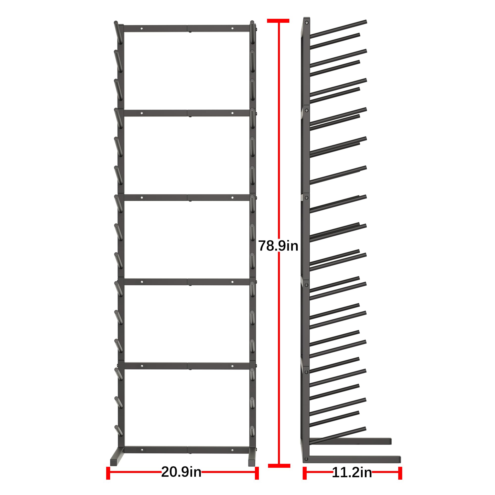 Transform cluttered spaces into efficient document hubs with our professional 15-tier blueprint rack—designed for architects, contractors, and creatives. Unrivaled Strength & Stability Heavy-gauge carbon steel arms support 30 lbs each, securing construction blueprints, movie posters, or vinyl rolls. The L-shaped base anchors rolls vertically, eliminating tipping risks even at full capacity. Engineered for Precision Laser-cut components ensure perfect hole alignment for wobble-free wall mounting. Matte black powder coating creates a rust-resistant shield, enduring workshop spills and humid job sites. Adapts to Any Workspace Vertical 78.9" height fits narrow walls in offices, studios, or trailers. Adjustable arms accommodate thin art canvases or thick engineering documents while maximizing accessibility. Why Professionals Choose Us: 30lb/arm load capacity (industry-leading) L-shaped base prevents roll displacement 10-minute installation, no technical skills 15 tiers store 5X more than basic racks