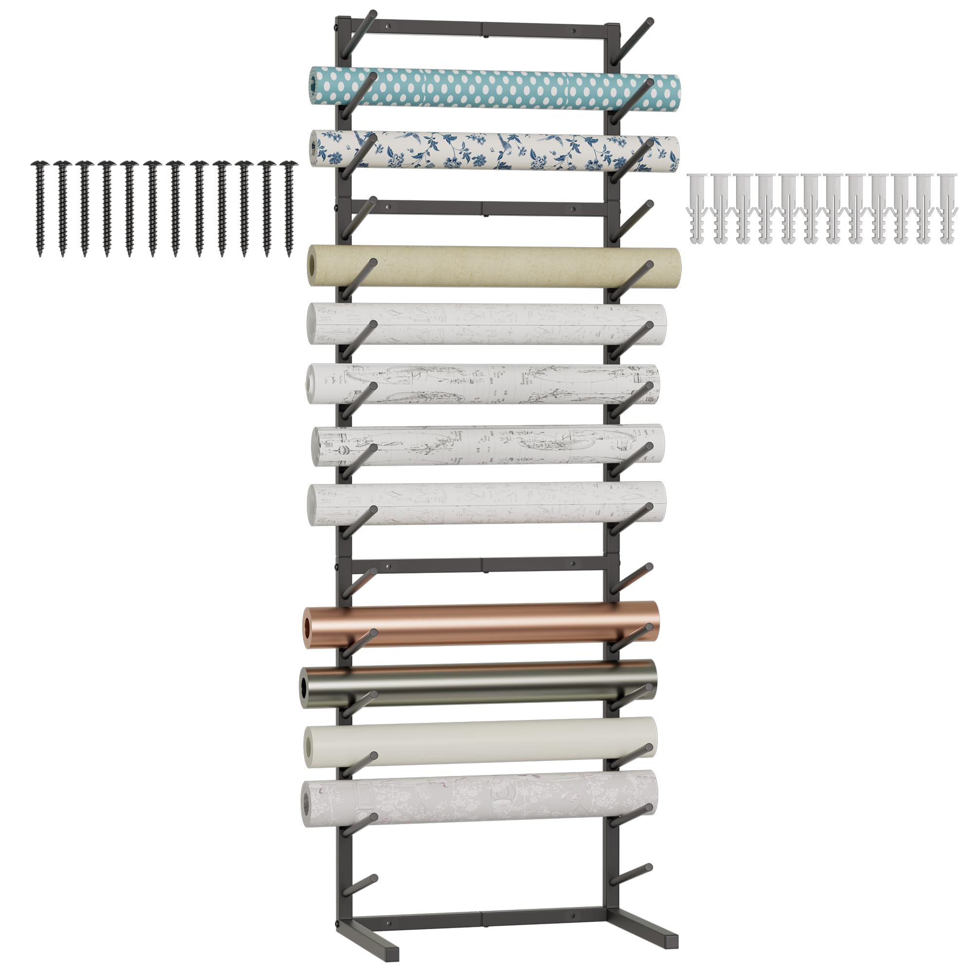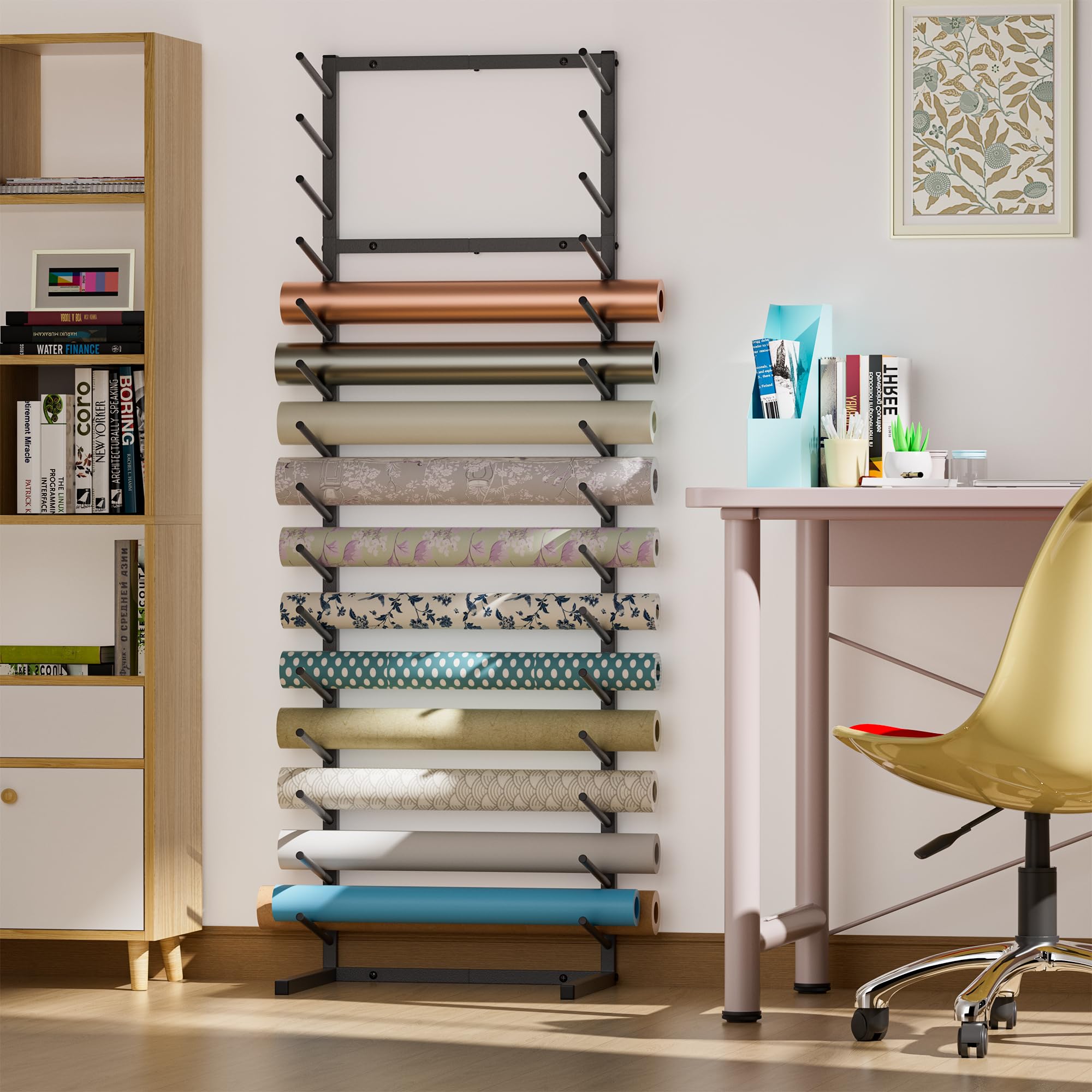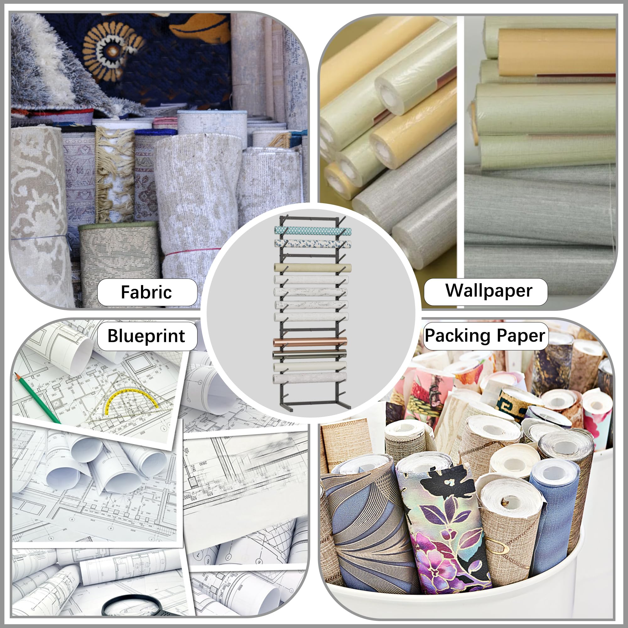 【30lb Max Load per Arm】15-tier reinforced metal arms (not wires!) hold 30 lbs each—double standard capacity. Stores 1-4 rolls per shelf (60 total) for blueprints, posters, vinyl rolls, or art prints without bending.