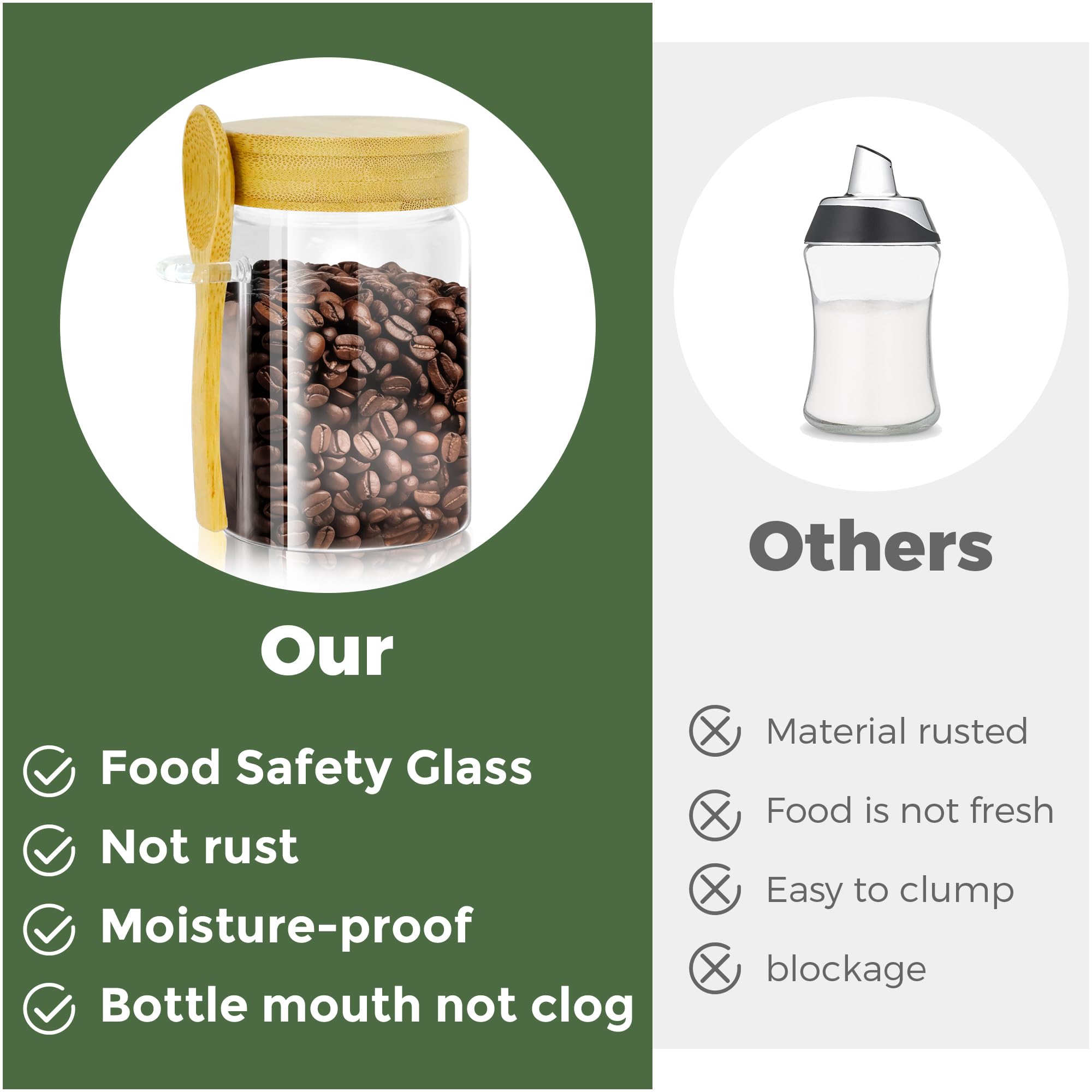 Premium Craftsmanship:Our sugar jar container is meticulously crafted from food-safe glass, ensuring both durability and the secure storage of sugar and other kitchen essentials.15 oz capacity glass canister is perfect for storing and preserving various foods