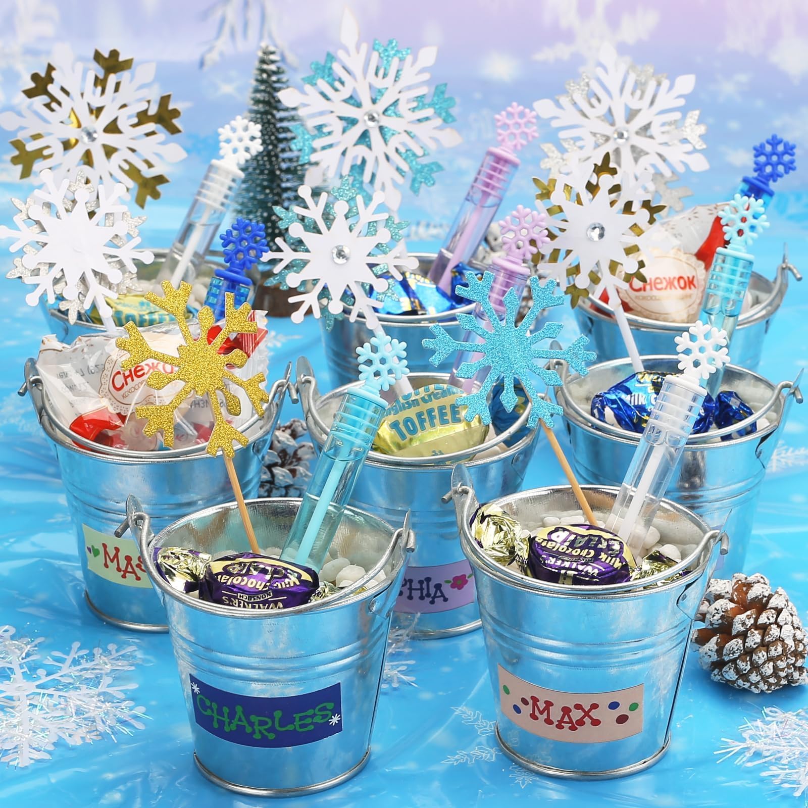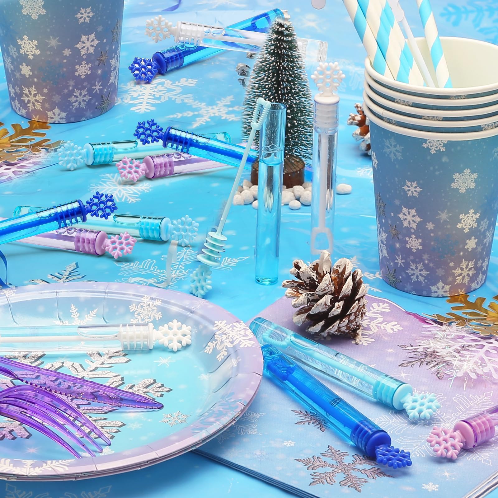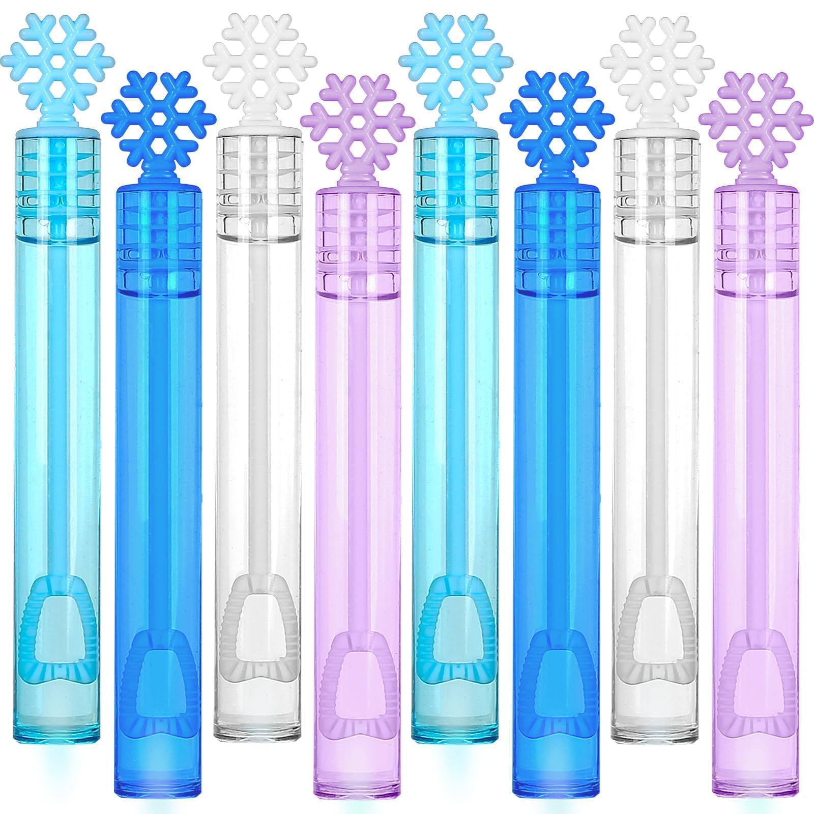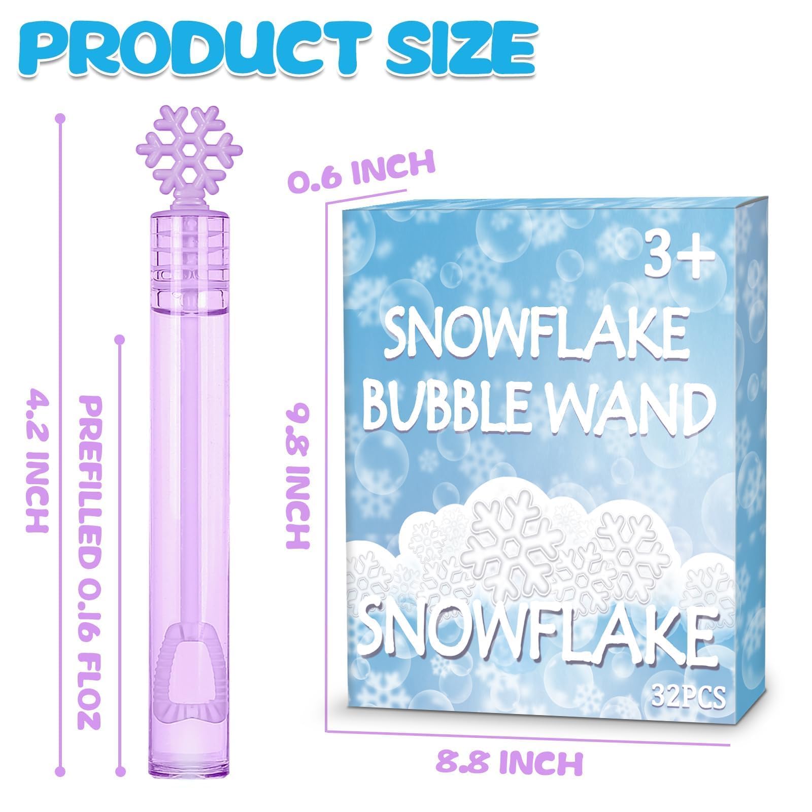 Bubble design: 32 pcs mini bubbles with unique snowflake-shaped tops, 4 elegant colors (blue, white, purple, dark blue)No little ones doesn't love. It works wonders at keeping toddler busy for hours providing endless fun for kids