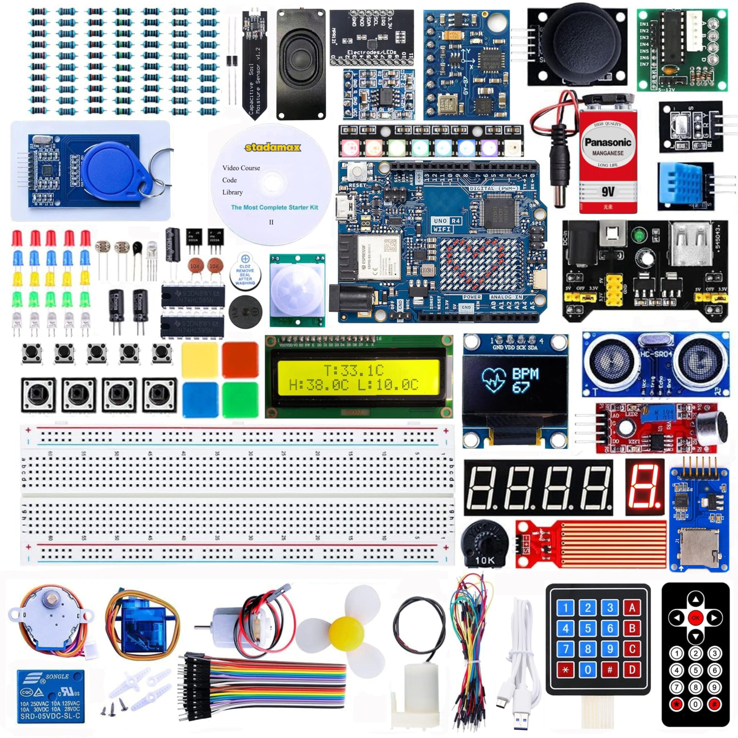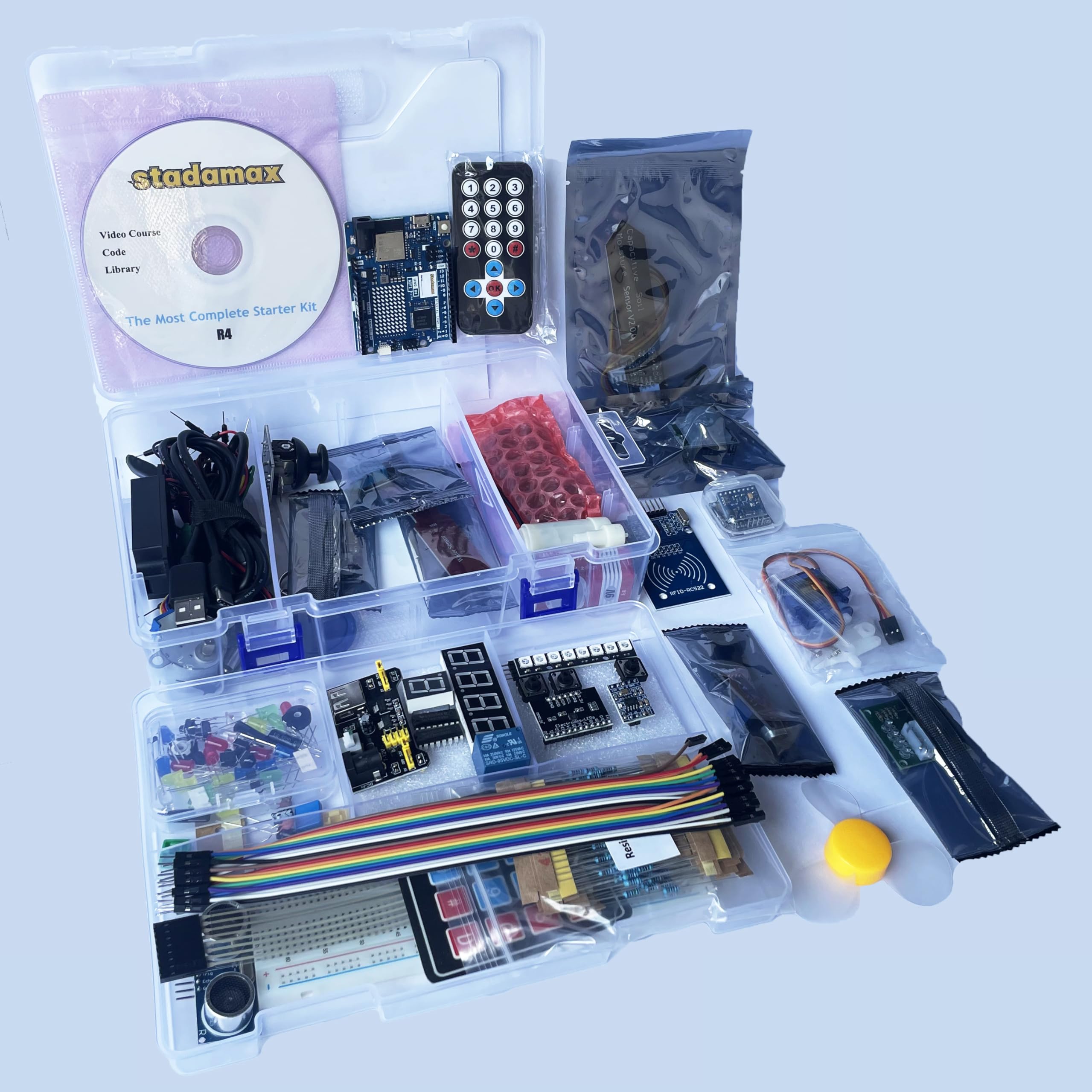 Super Starter Kit : The Kit Has 300+ High-quality Components,Such as Atmospheric Pressure/Acceleration/Angle Expensive Sensor.Exclusive R4 Video Course (9+ lessons) , Software code, Libraries, Datasheets in CD. It's Perfect for Beginners Aged 8+ to Explore Arduino.