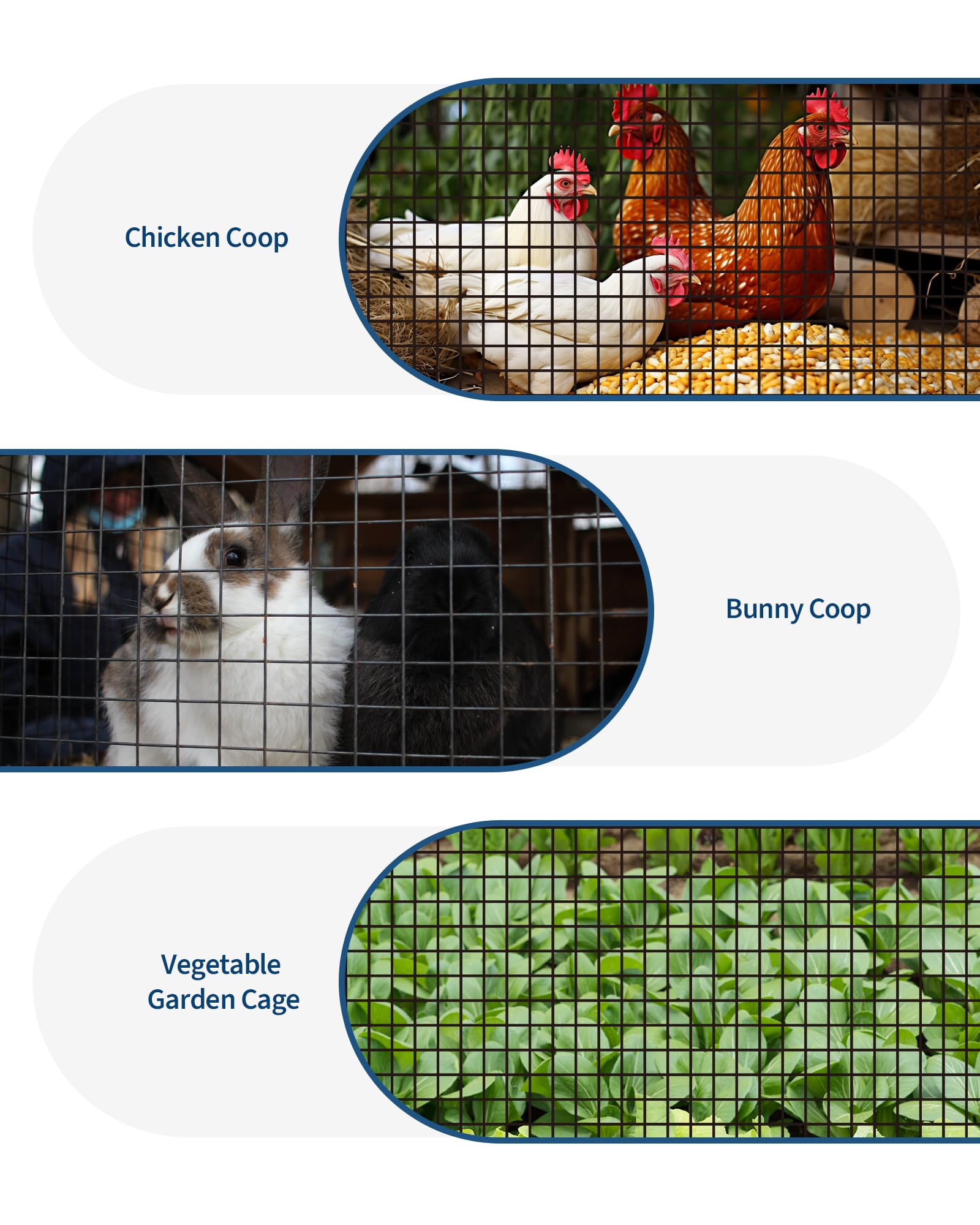 Widely Used:This hardware cloth serves as rabbit fencing, chicken coop, tree guards, It effectively deters foxes, skunks, snakes, and other predators from damaging gardens or poultry, safeguarding your property.