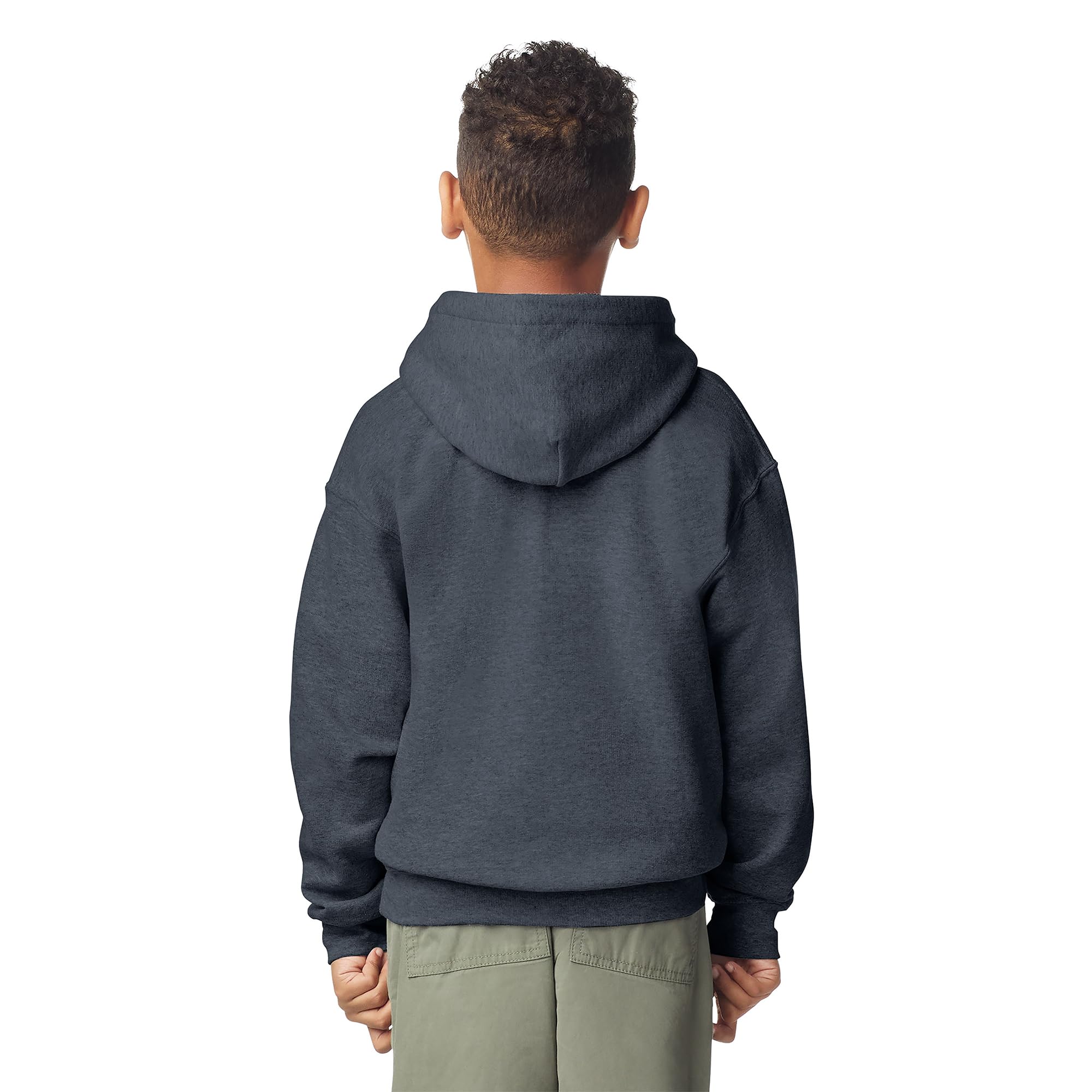 Description Kids play hard. The Gildan Youth Hooded Sweatshirt works just as hard to keep up with whatever they throw at it. From the backyard to the playground, with a double-lined hood and soft, pill-resistant air-jet soft yarn, it delivers long-lasting soft comfort along with a smooth, decorator-friendly, finish.