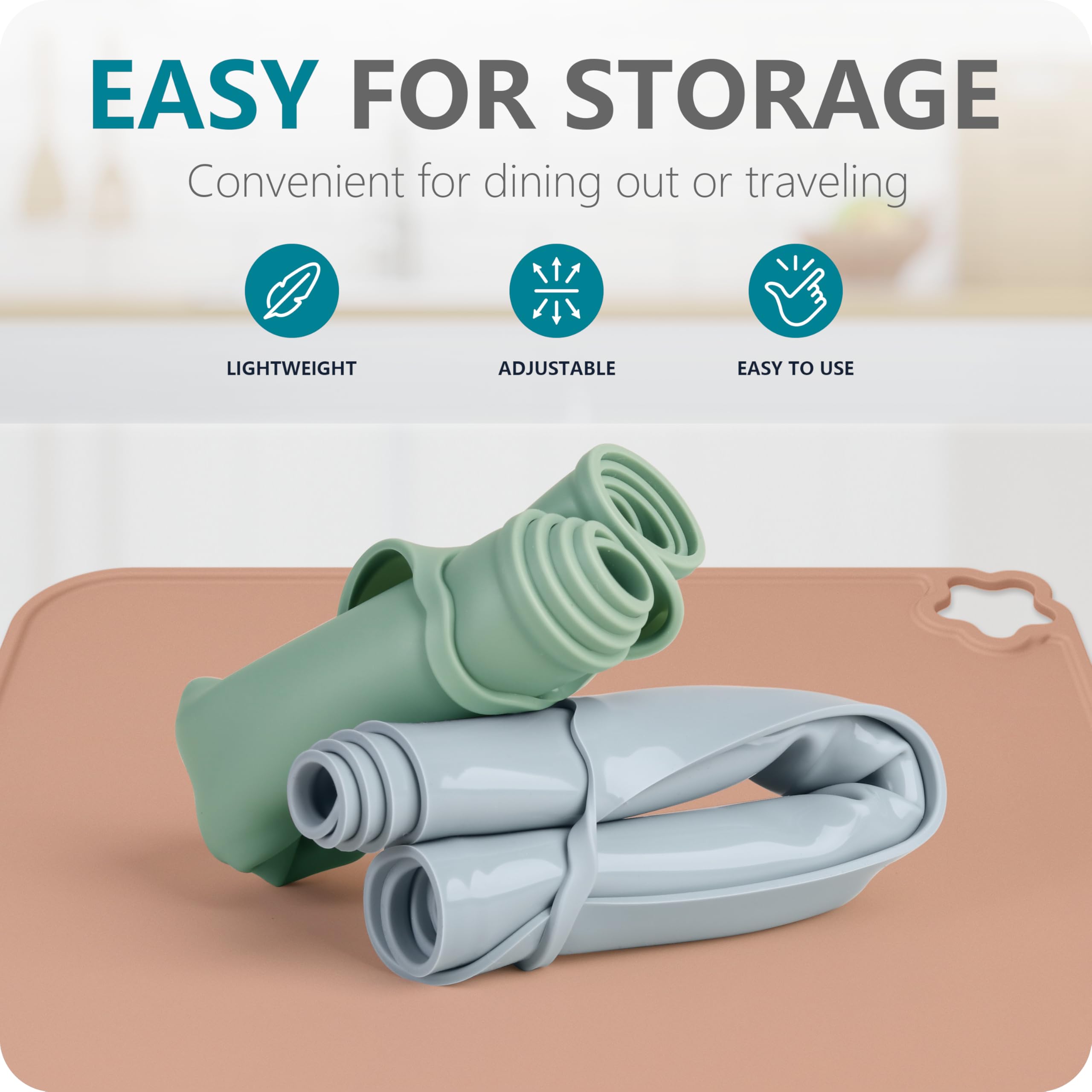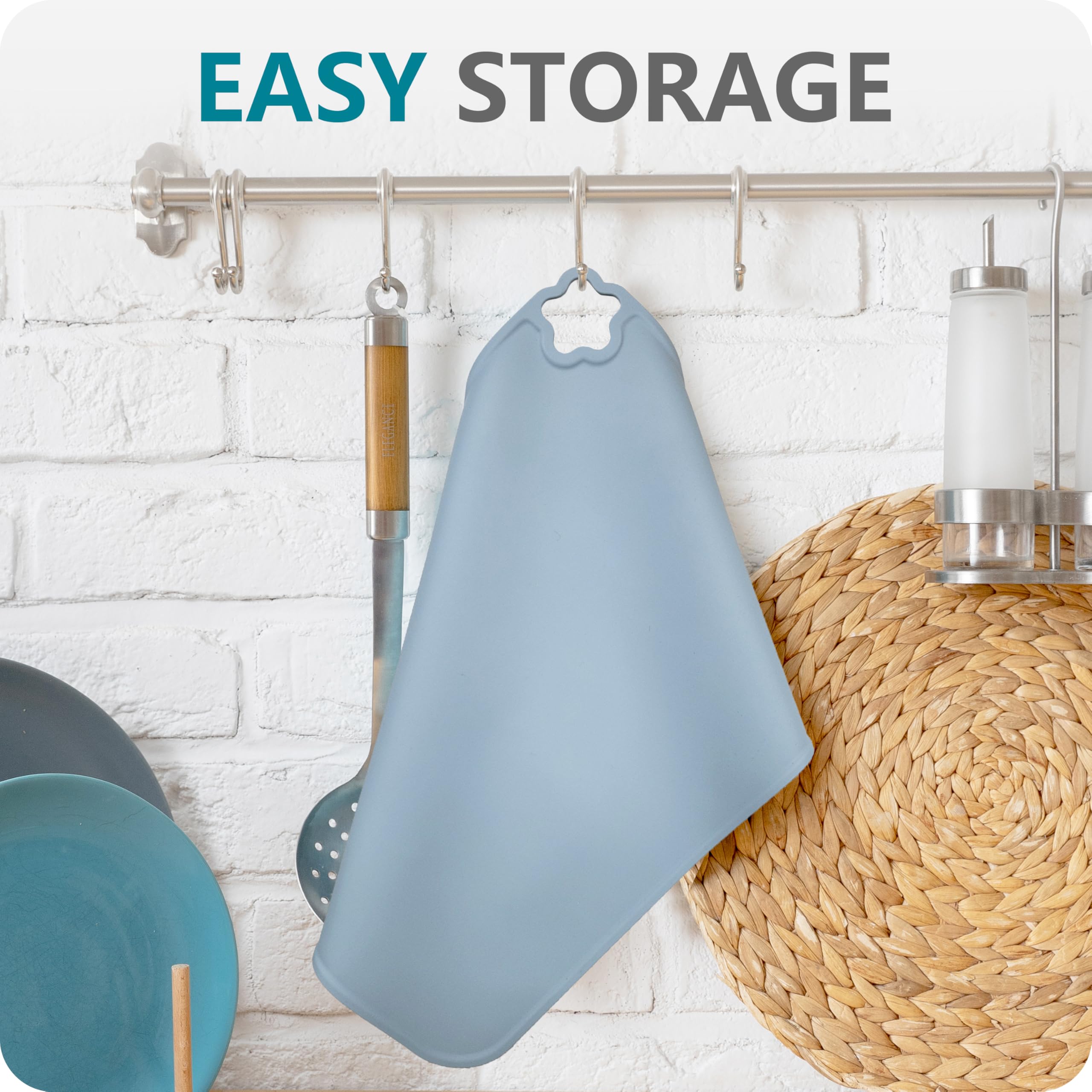 Foldable & Portable: The unique design of the flower hollow in the upper right corner of the placemat makes it more portable, you don't need to use any strap. And these soft and flexible silicone mats are thin enough to roll up easily and fit in any bags, great for using at restaurants or travel