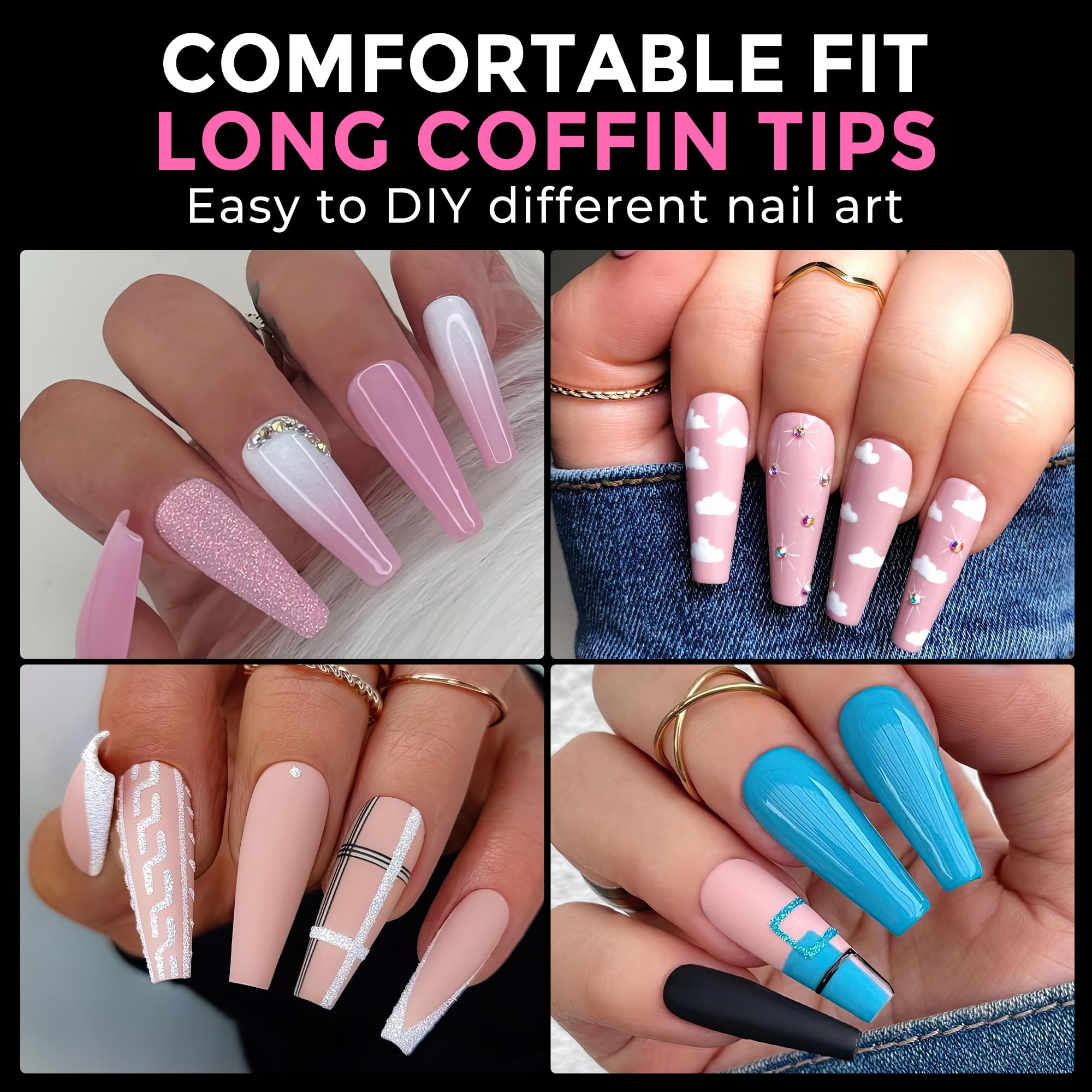 ❀️Long Lasting 21 days+: The Long coffin tips can last more than 3 weeks according to the right using process, no smell and no harm to your nail. No crease Acrylic nail tips. Enjoy nail fun with your friend and family.