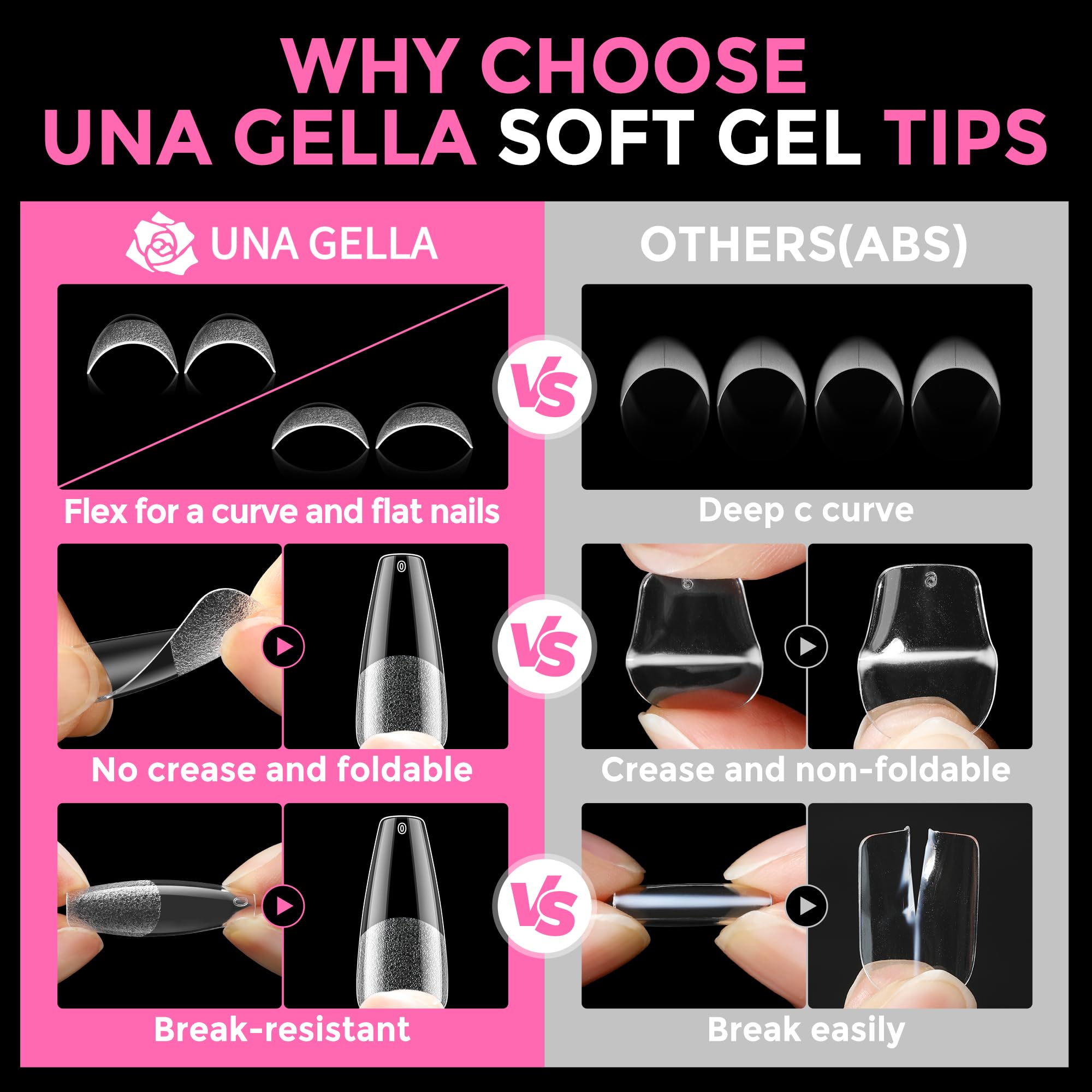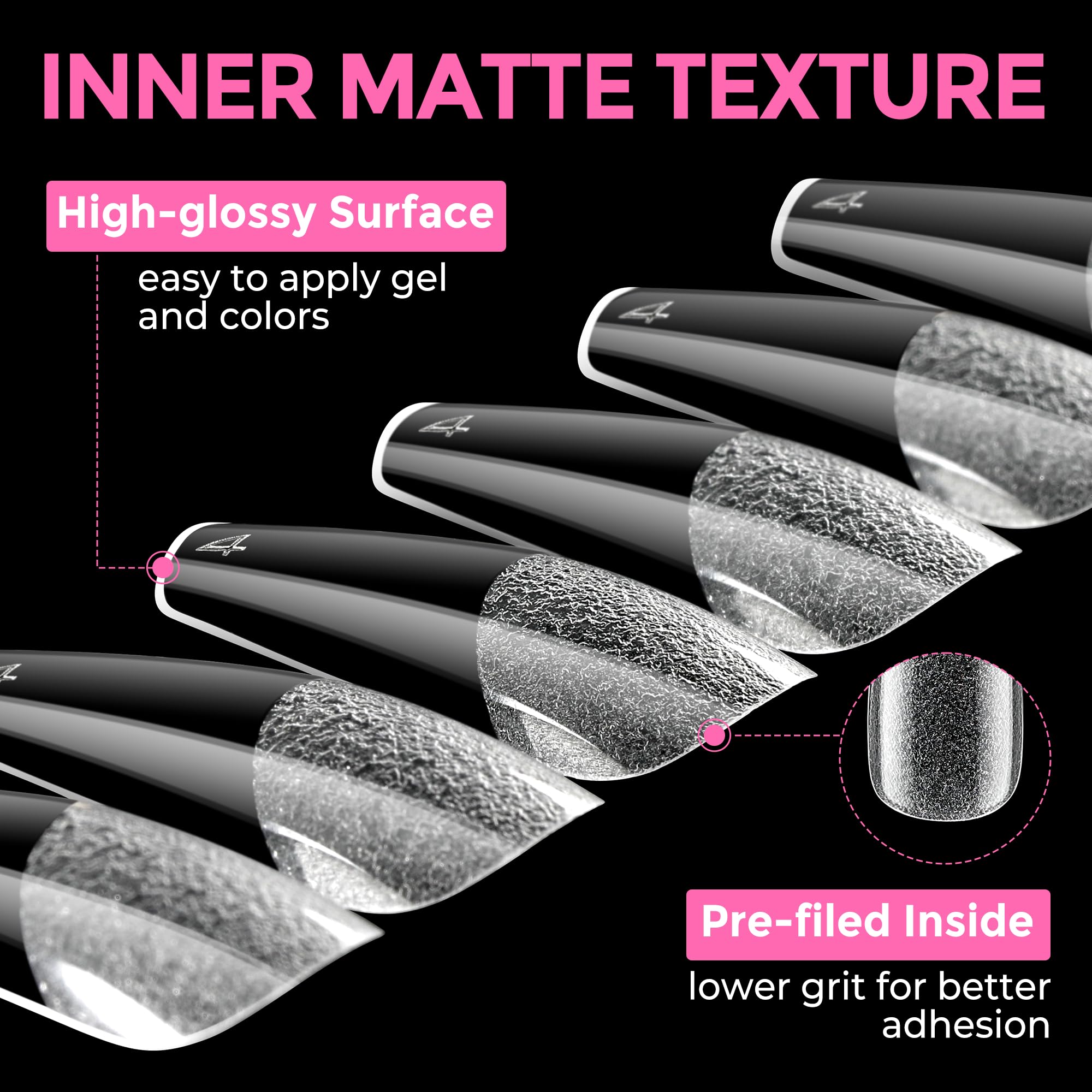 ❀️Easy to Use: Our smooth edge of tips have a more shallow curve, convenient to press on nails beds tightly, without feeling uncomfortable "tightness", keep the color good without separation or exposure, your nails will look more naturally. Pre-shape tips no need file and saving much your time, more sturdy sticking.