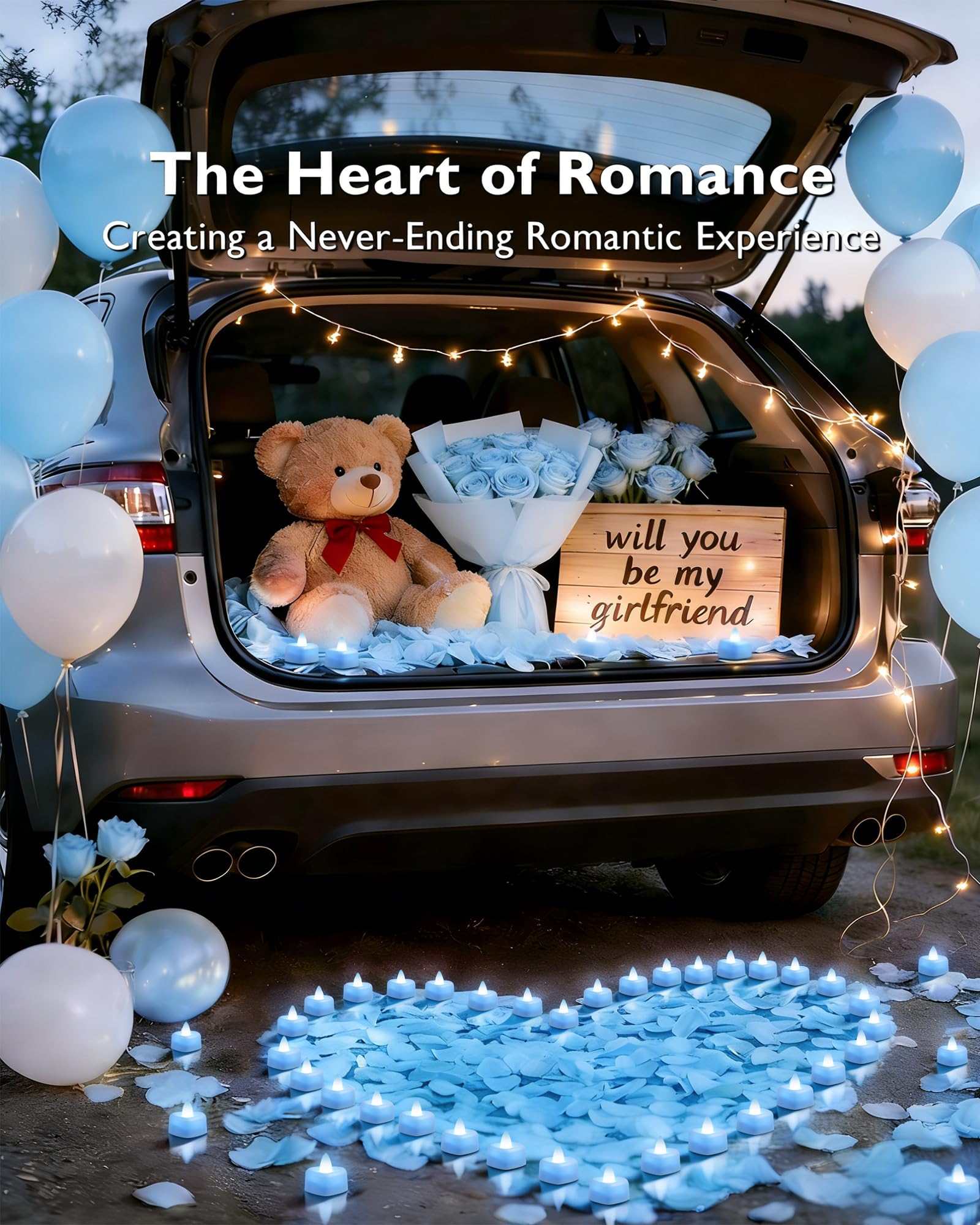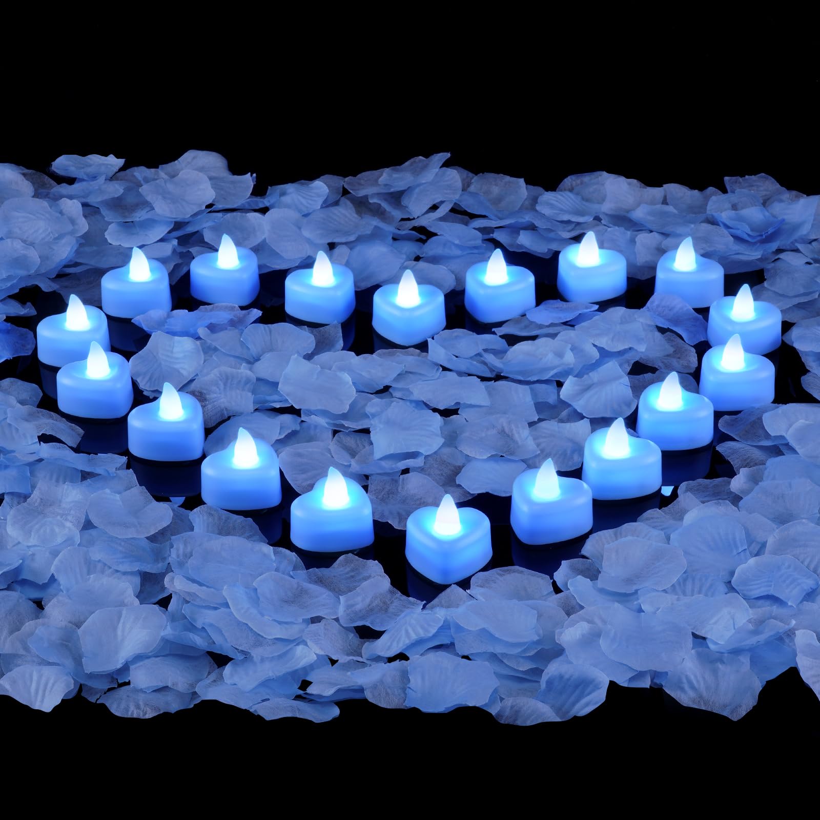 Create a Romantic Atmosphere: Elevate your special evenings with our unique tea lights featuring 24 heart-shaped LED battery tea candles and 2000 perfectly crafted artificial rose petals–the ultimate surprise for your loved one