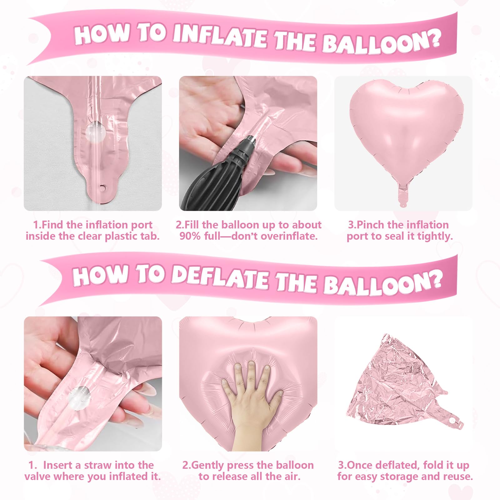 Easy to Inflate and Use: Our heart shaped foil balloons can be filled with either air or helium. Simply use the included straw or a pump, and inflate to about 85%–90% to avoid overexpansion. Each balloon is designed with a self-sealing valve, so no knotting is required. The set also comes with a ribbon, making it quick and convenient to hang or tie the heart balloons wherever you like.