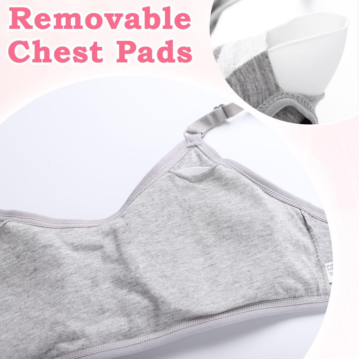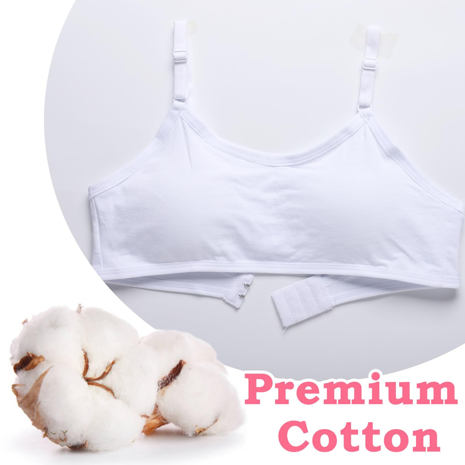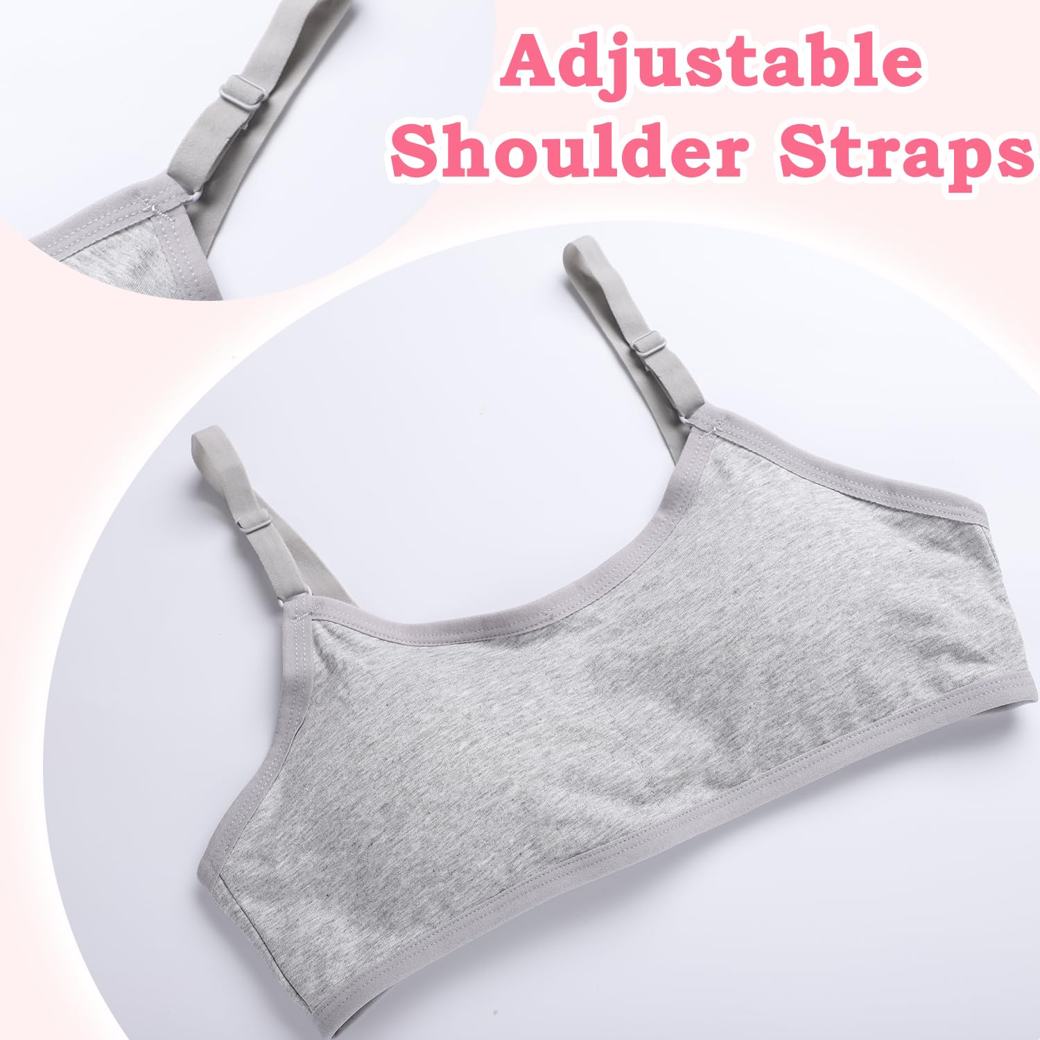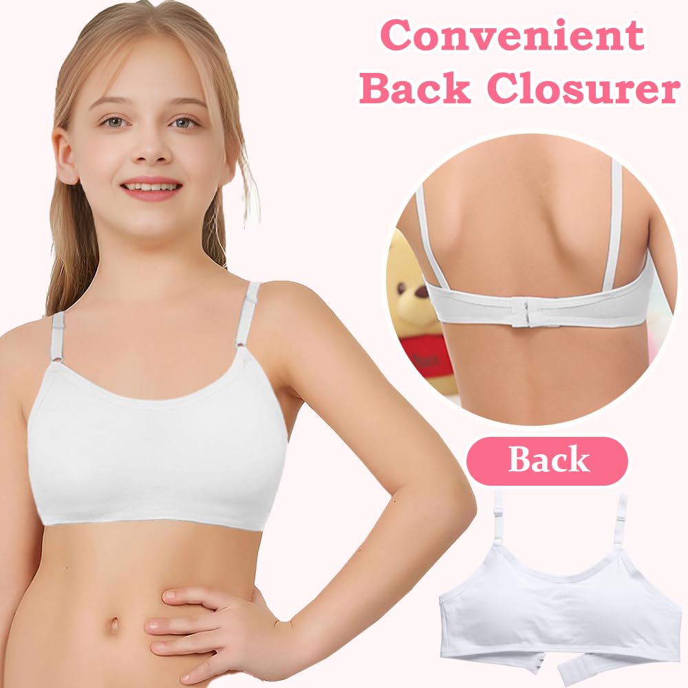 【Comfortable and Breathable】This teen girls bra is made of soft cotton which won't hurt the girls' delicate skin.The breathable fabric will keep you cool and dry all day long even if you wear it to participate in various activities.
