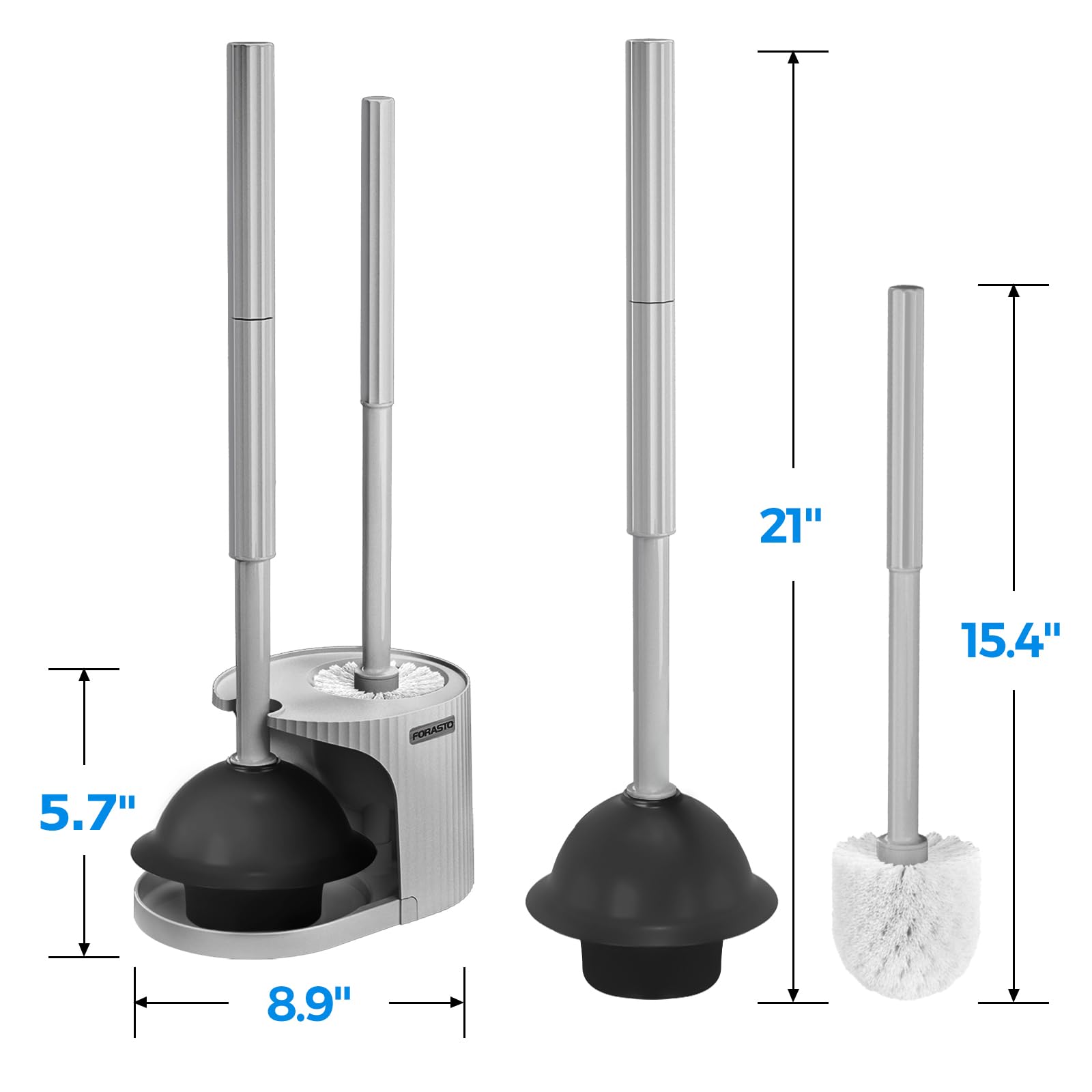 Toilet Brush and Plunger Set: This product has a toilet brush with thick bristles, a high-suction toilet plunger with an extended handle and a stable bracket