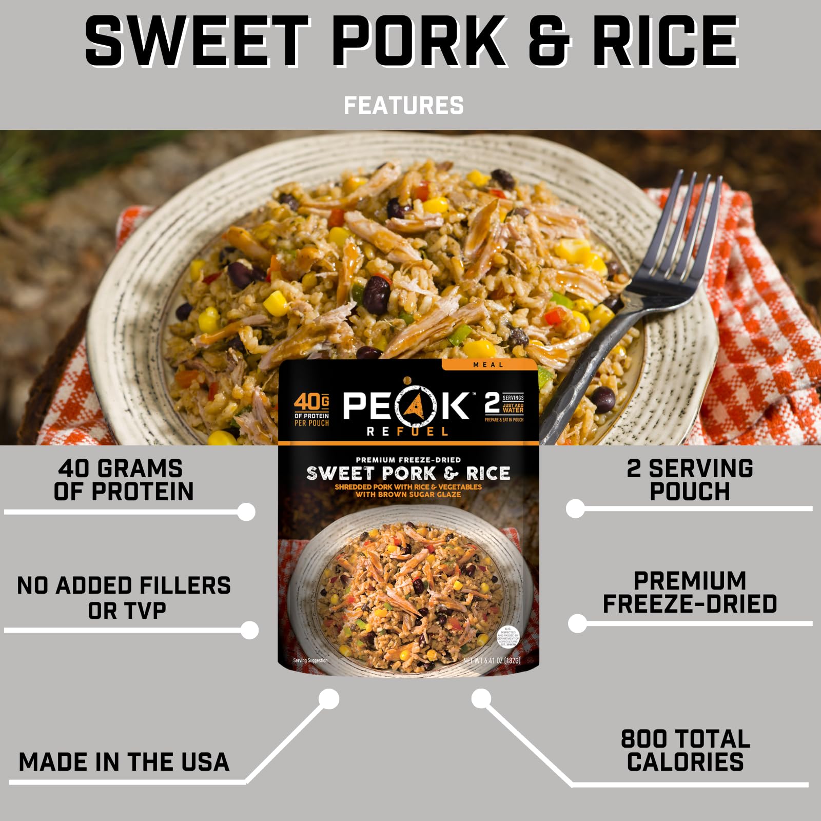 100% REAL MEAT & 2X THE PROTEIN – Peak Refuel will never use TVP or any other filler in the meat we use. Our meals will always contain 100% USDA inspected meat with nearly double the amount of protein per serving than most outdoor meals on the market.
